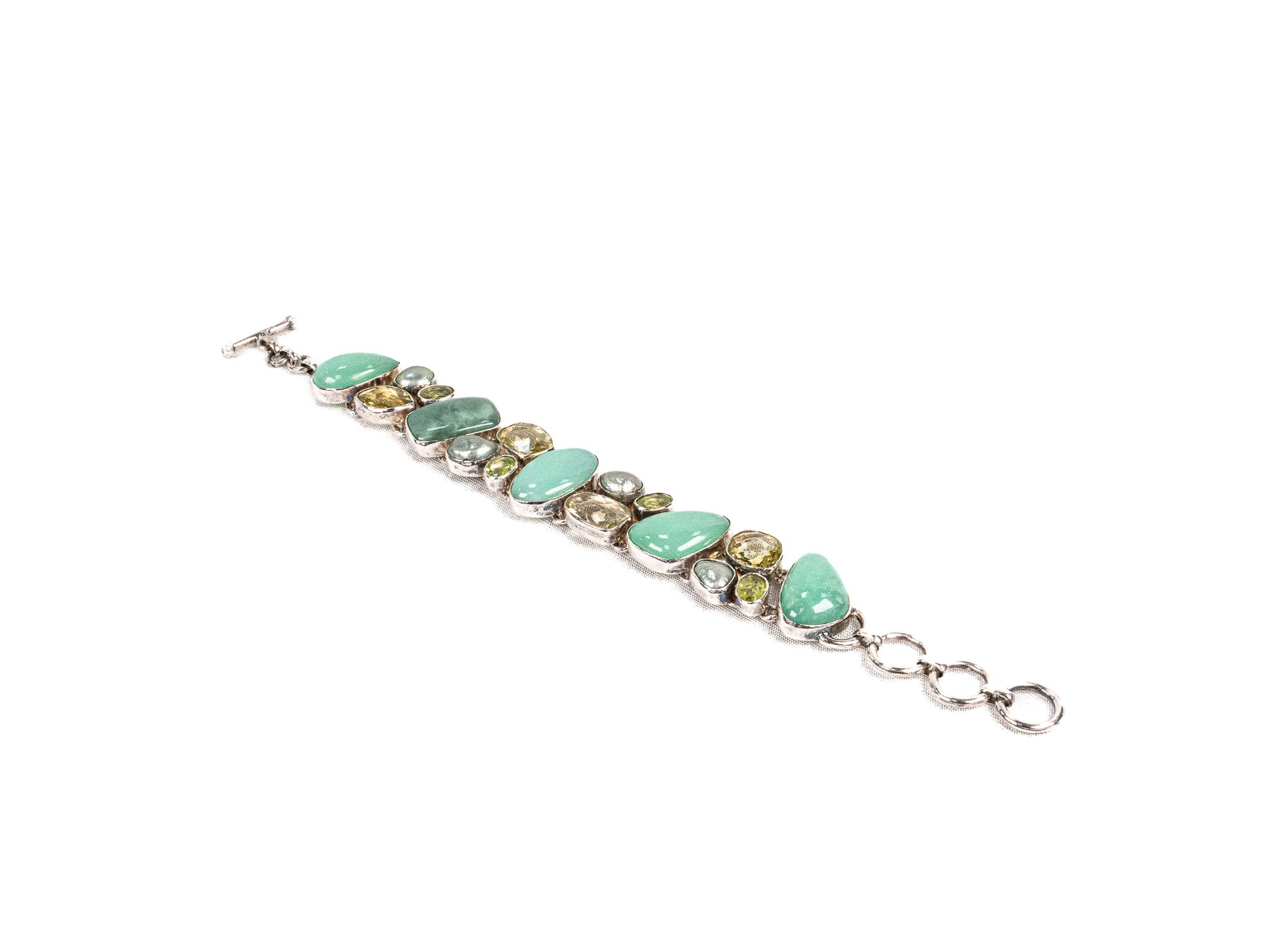 Descopera Bratara din Argint 925 cu Crisopraz, Citrin, Peridot, Perla Sidefata, o bratara din Argint 925 cu Crisopraz, Citrin, Peridot, Perla Sidefata in nuante Verde, cu design modern si elegant, perfecta pentru a completa orice tinuta.