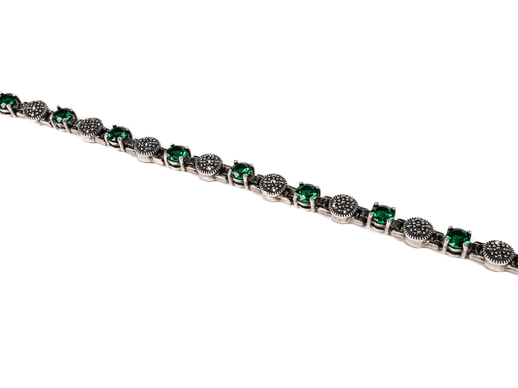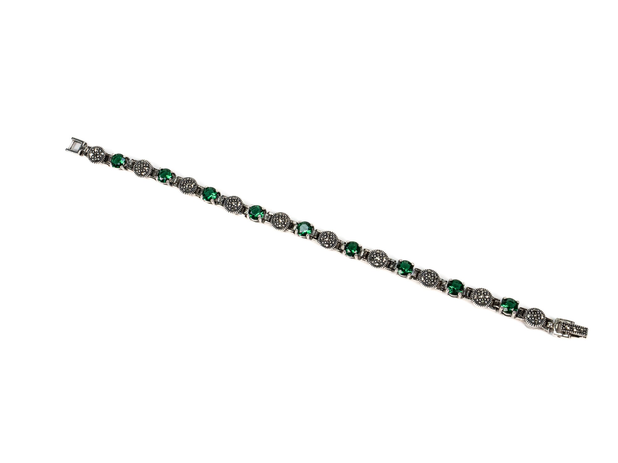 Descopera Bratara din Argint 925 cu Marcasite, o bratara din Argint 925 cu Marcasite in nuante Verde, cu design modern si elegant, perfecta pentru a completa orice tinuta.