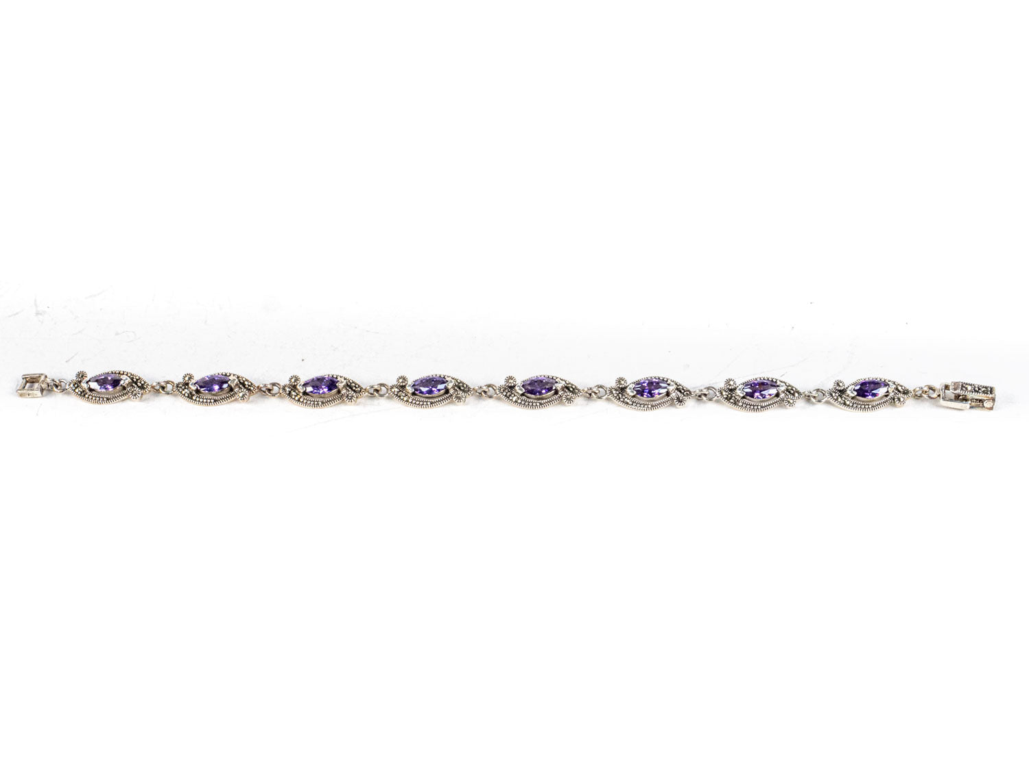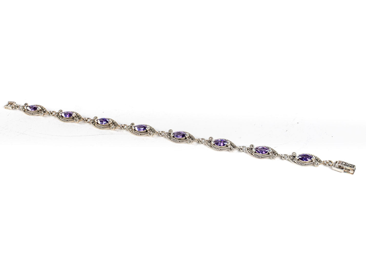 Descopera Bratara STILL, Argint 925 - Marime 19cm x 7.5mm, Reglabila, Zirconia si Marcasite, Violet, o bratara din Argint 925 cu Zirconia si Marcasite cu design modern si elegant, perfecta pentru a completa orice tinuta.