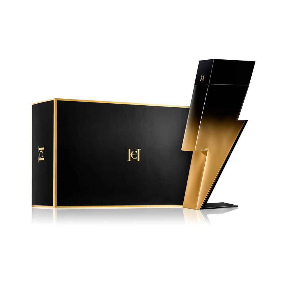 Flacon emblematic în formă de fulger — reinterpretat într-o nuanță intensă, aurie și neagră