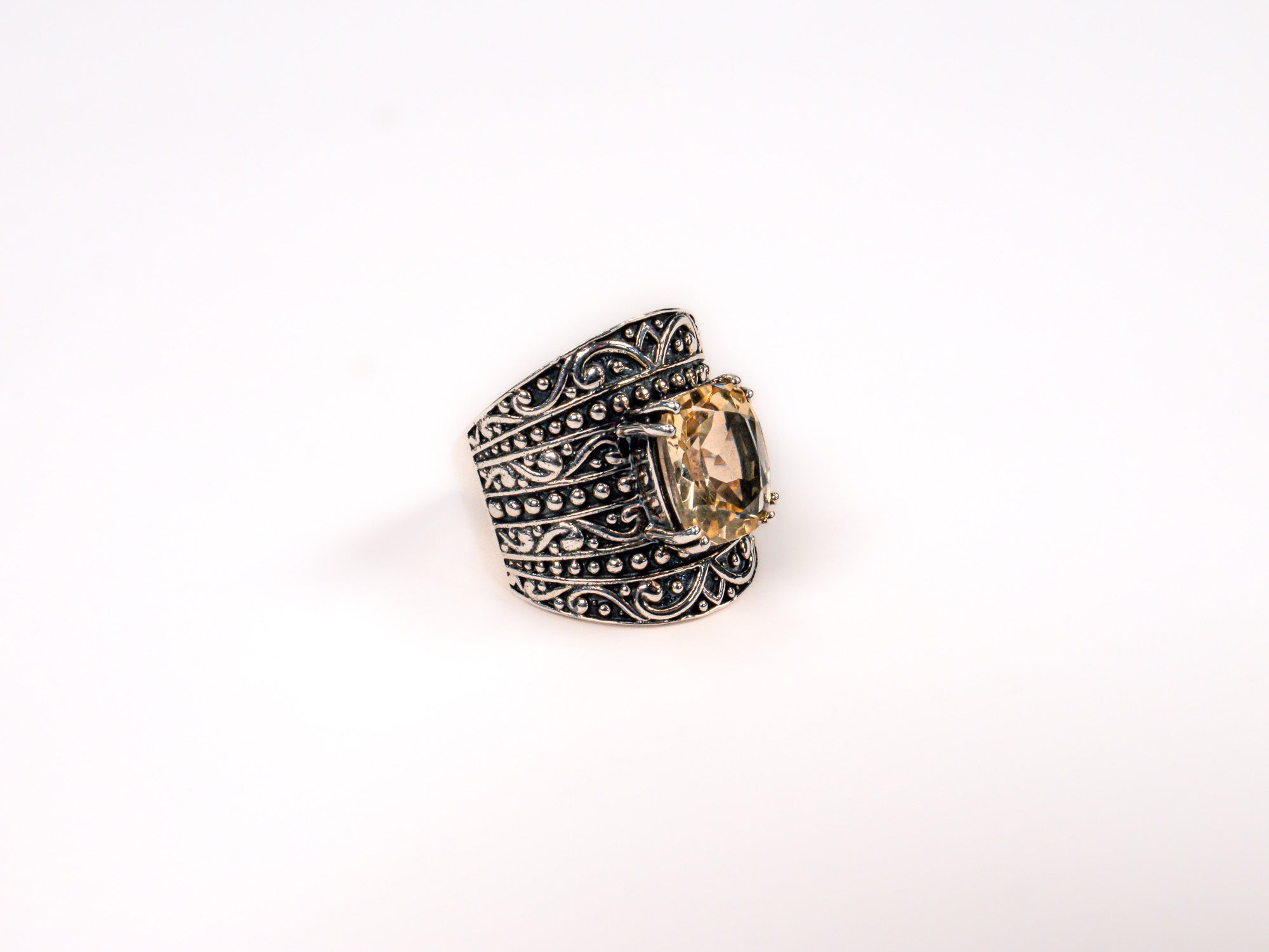 Inelul este decorat cu piatra citrin, care adauga o nota subtila de culoare si distinctie.