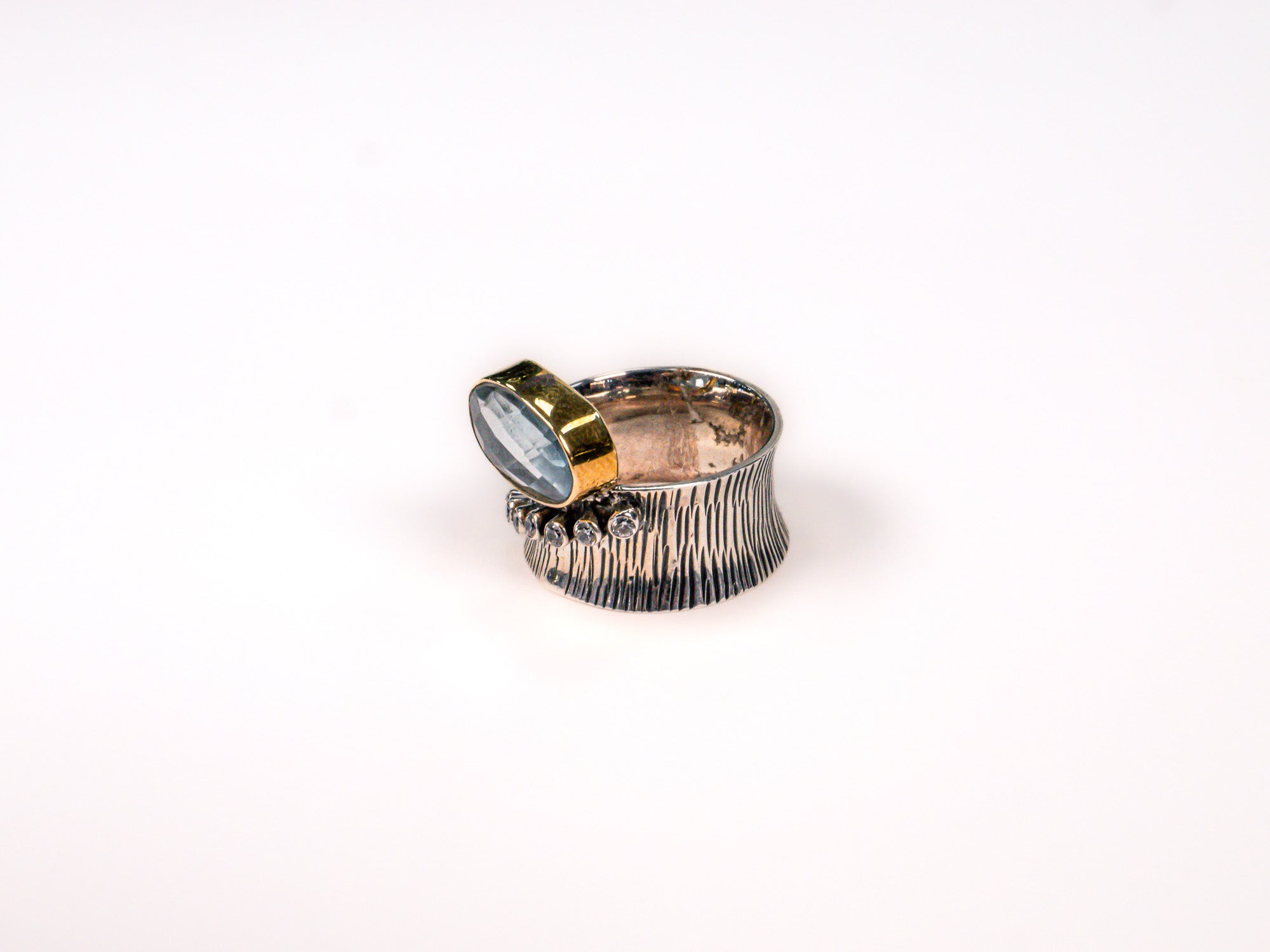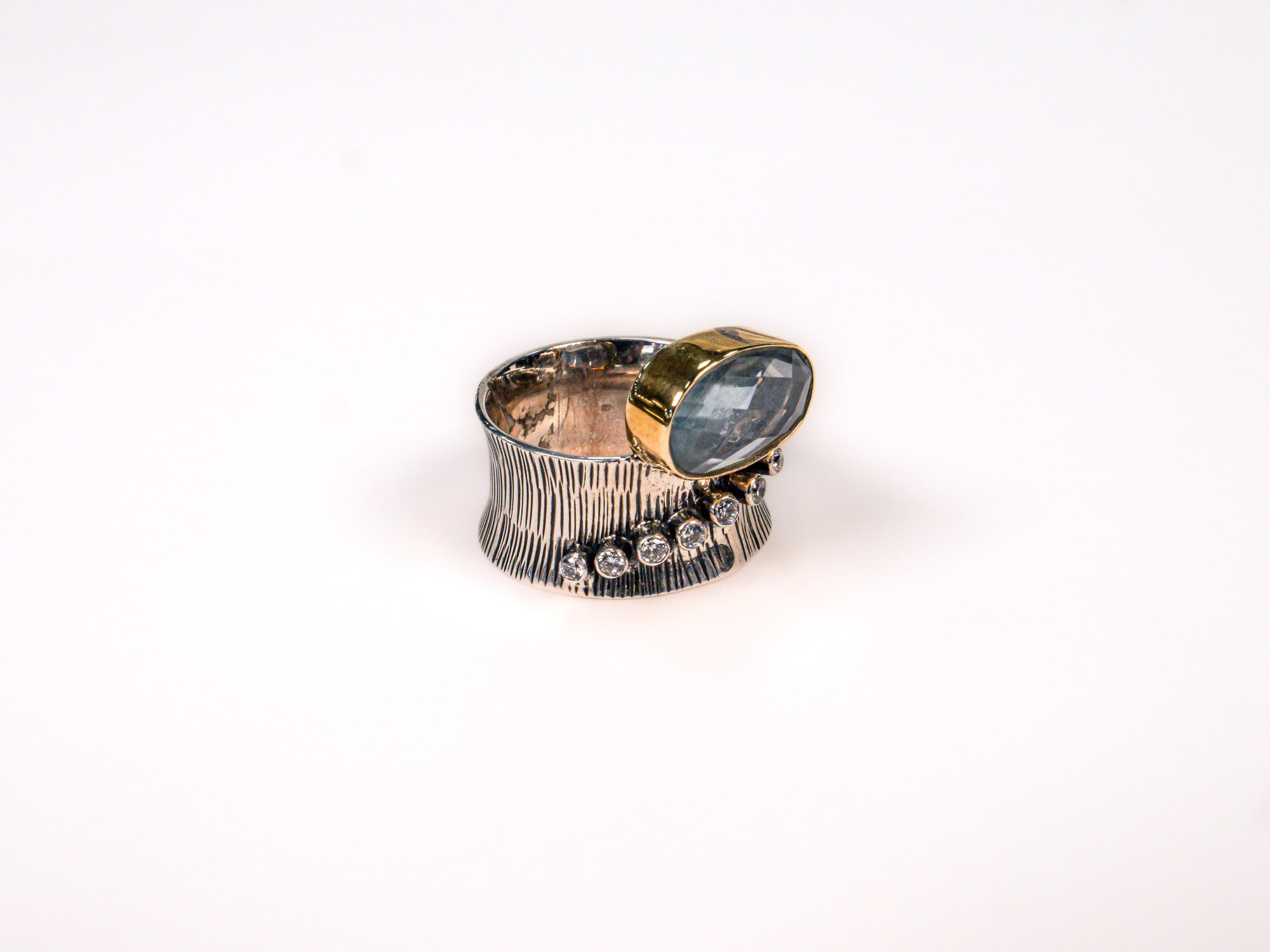 Inelul este decorat cu piatra cuart, care adauga o nota subtila de culoare si distinctie.