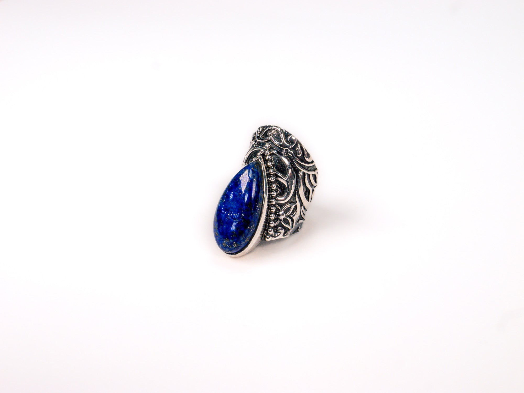 Inelul este decorat cu piatra lapis lazuli, care adauga o nota subtila de culoare si distinctie.