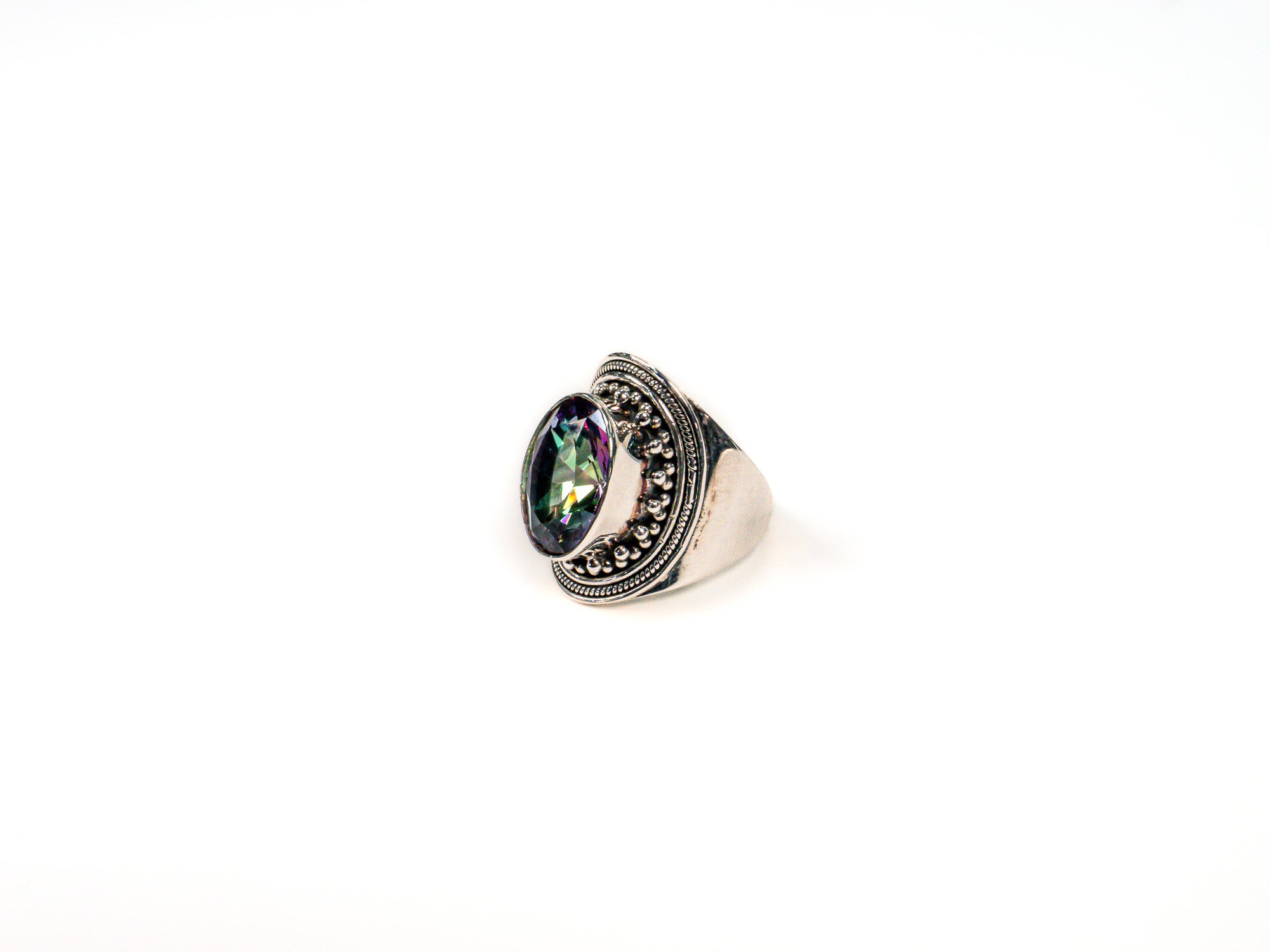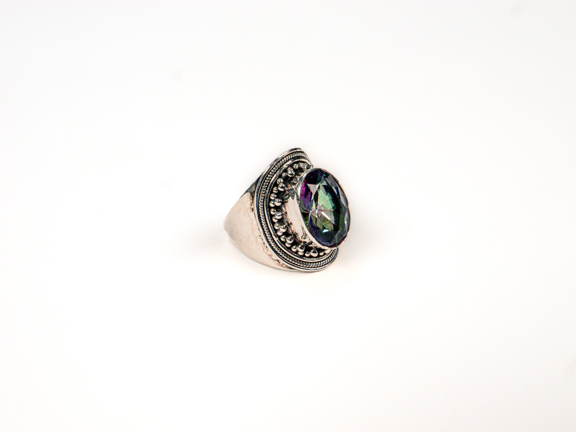 Inelul este decorat cu piatra mistic, care adauga o nota subtila de culoare si distinctie.