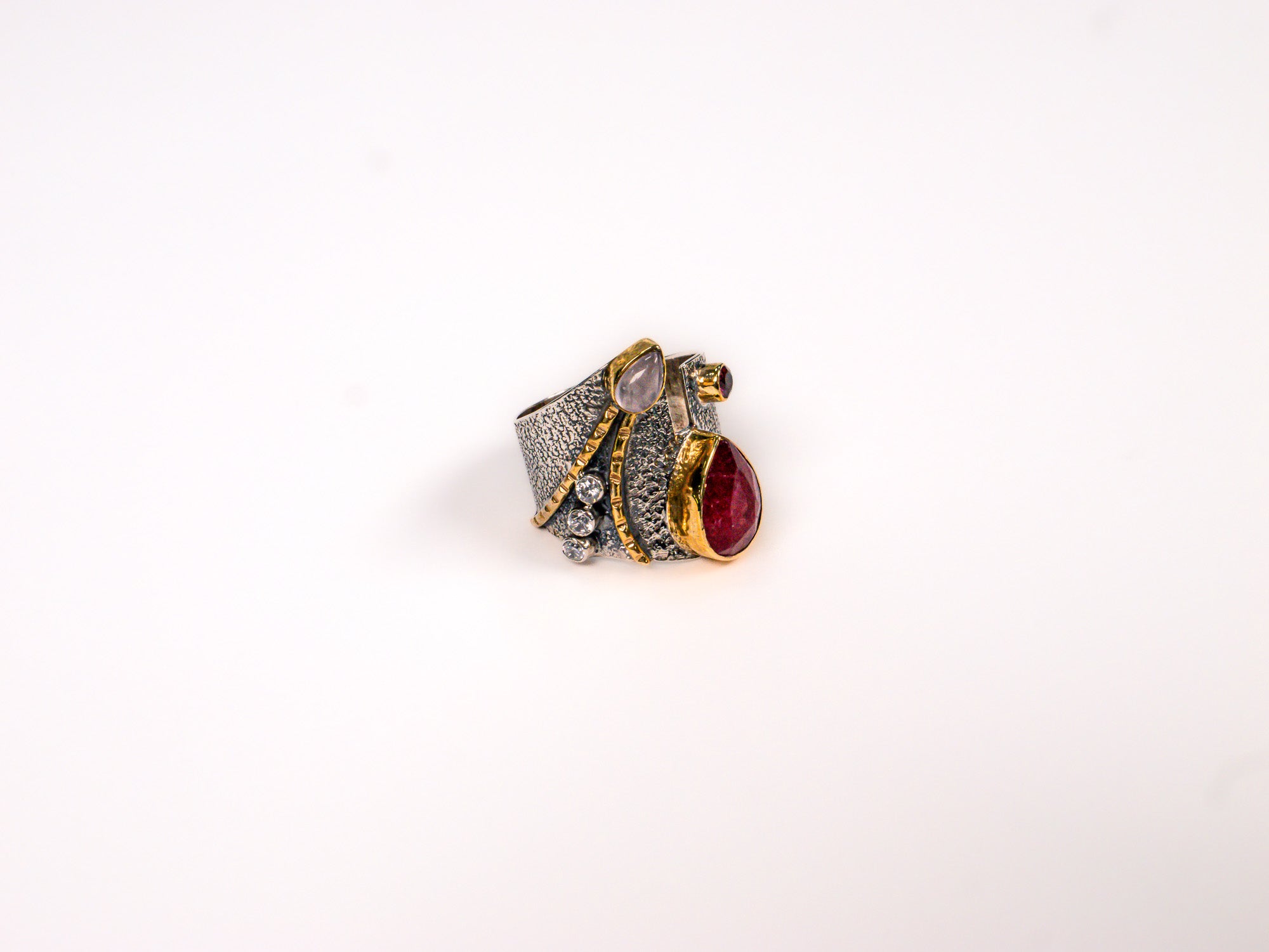 Inelul este decorat cu piatra radacina de rubin, care adauga o nota subtila de culoare si distinctie.