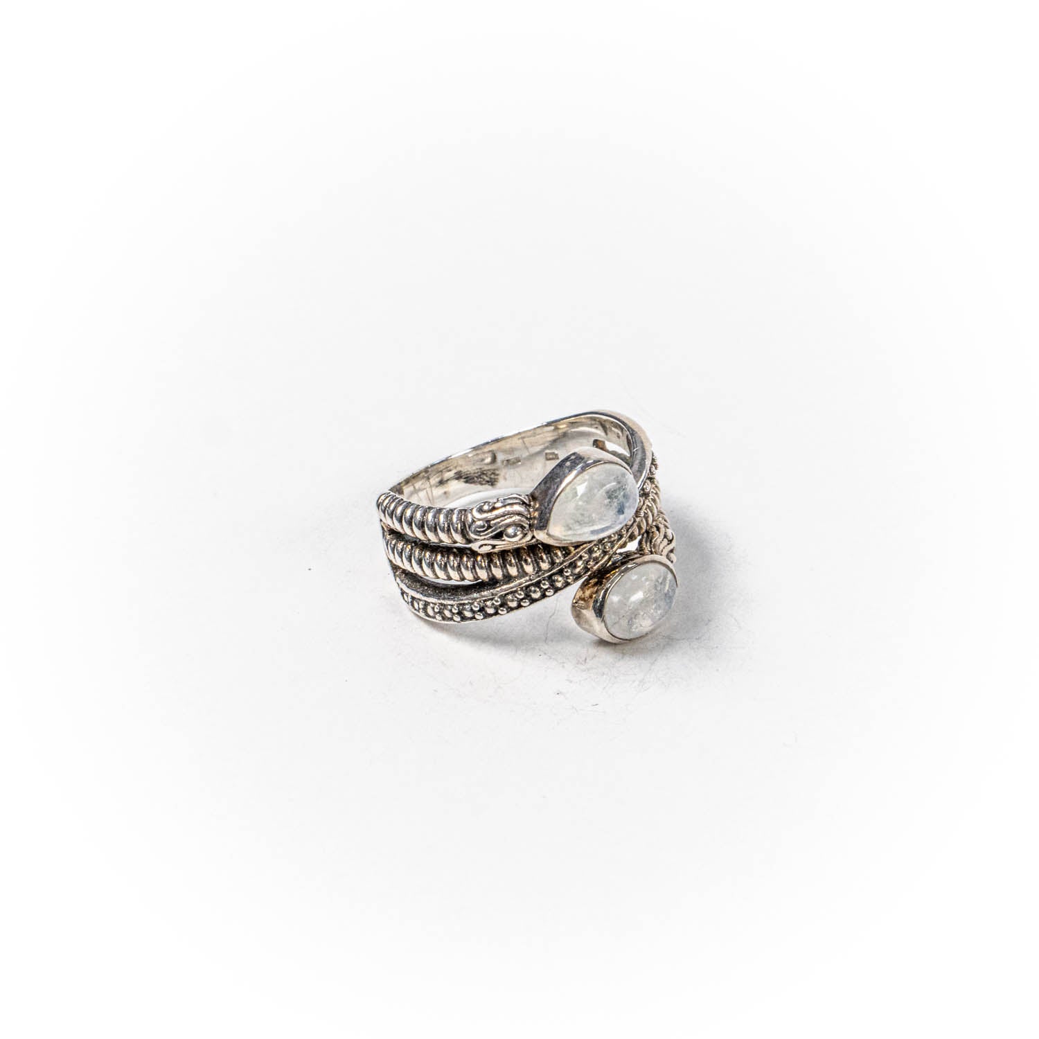 Inelul este decorat cu piatra piatra lunii, care adauga o nota subtila de culoare si distinctie.