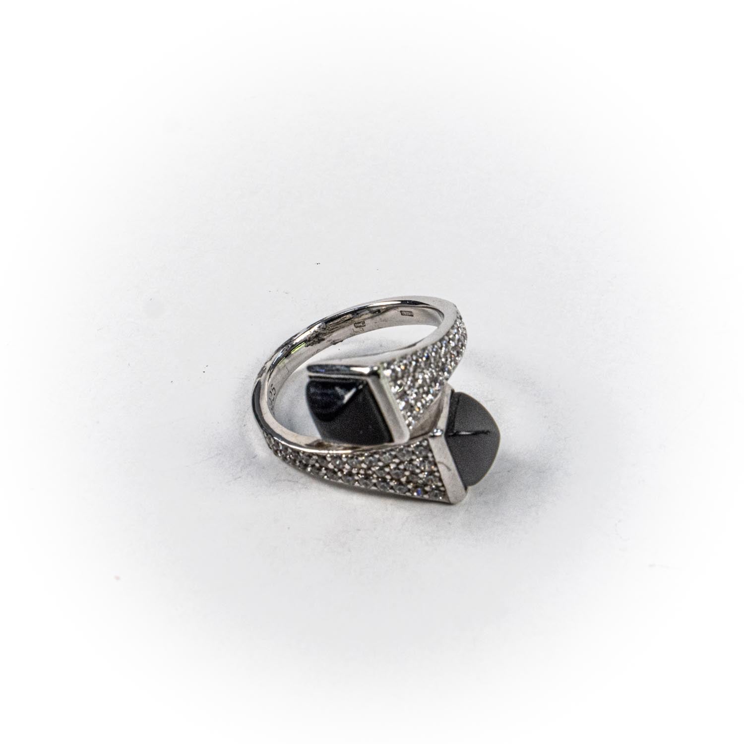 Inelul este decorat cu piatra zirconia si onix, care adauga o nota subtila de culoare si distinctie.
