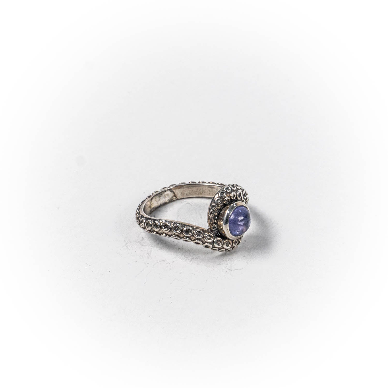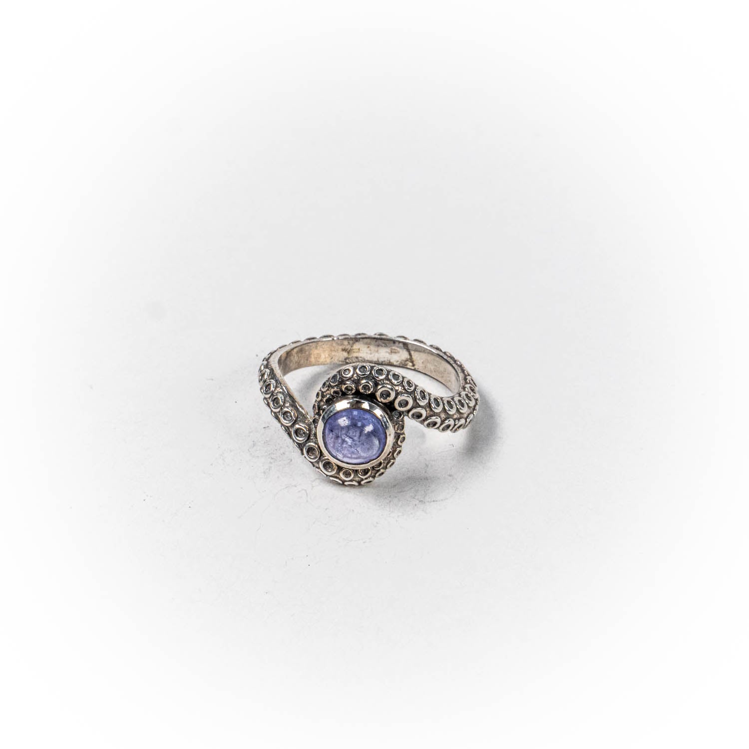 Inelul este decorat cu piatra piatra lunii, care adauga o nota subtila de culoare si distinctie.