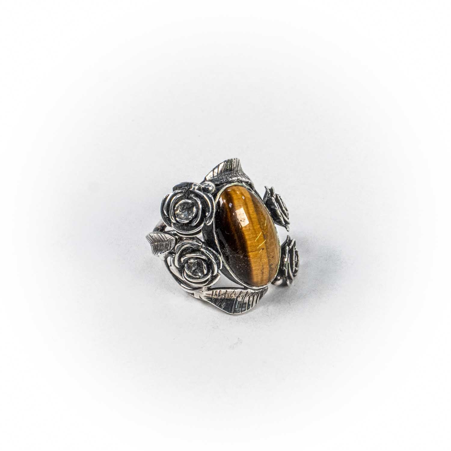 Inelul este decorat cu piatra ochi de tigru, care adauga o nota subtila de culoare si distinctie.