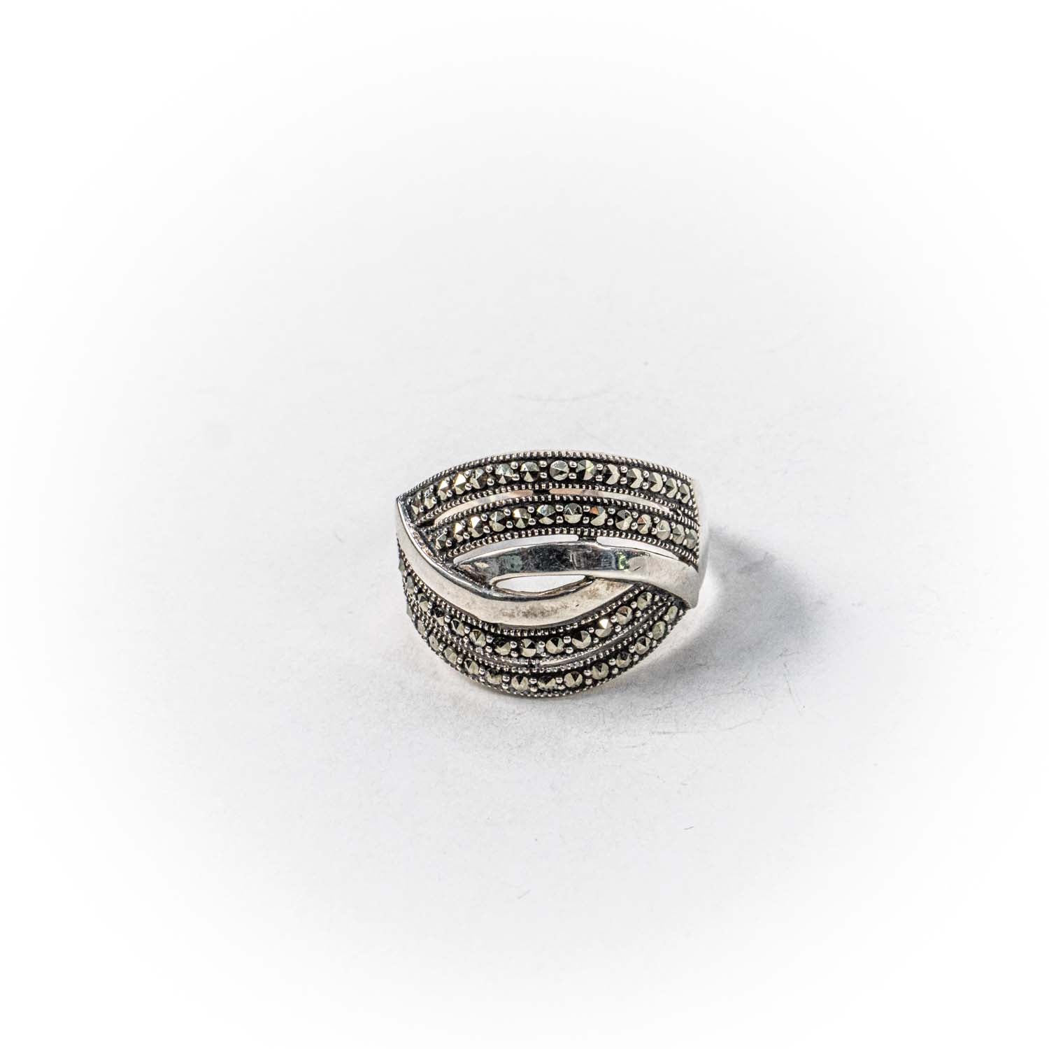 Inelul este decorat cu piatra marcasite, care adauga o nota subtila de culoare si distinctie.