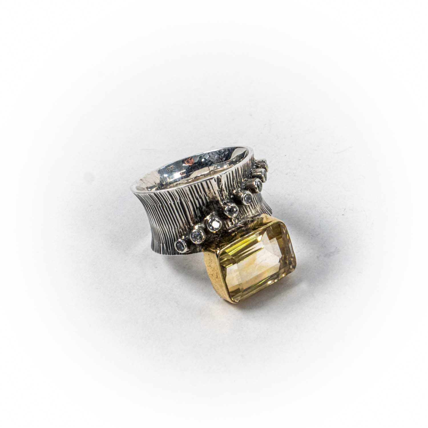 Inelul este decorat cu piatra citrin, care adauga o nota subtila de culoare si distinctie.