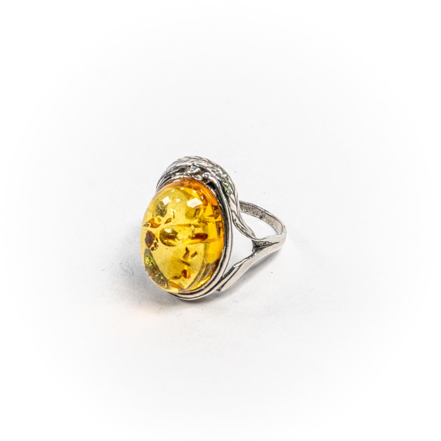 Inelul este decorat cu piatra chihlimbar, care adauga o nota subtila de culoare si distinctie.