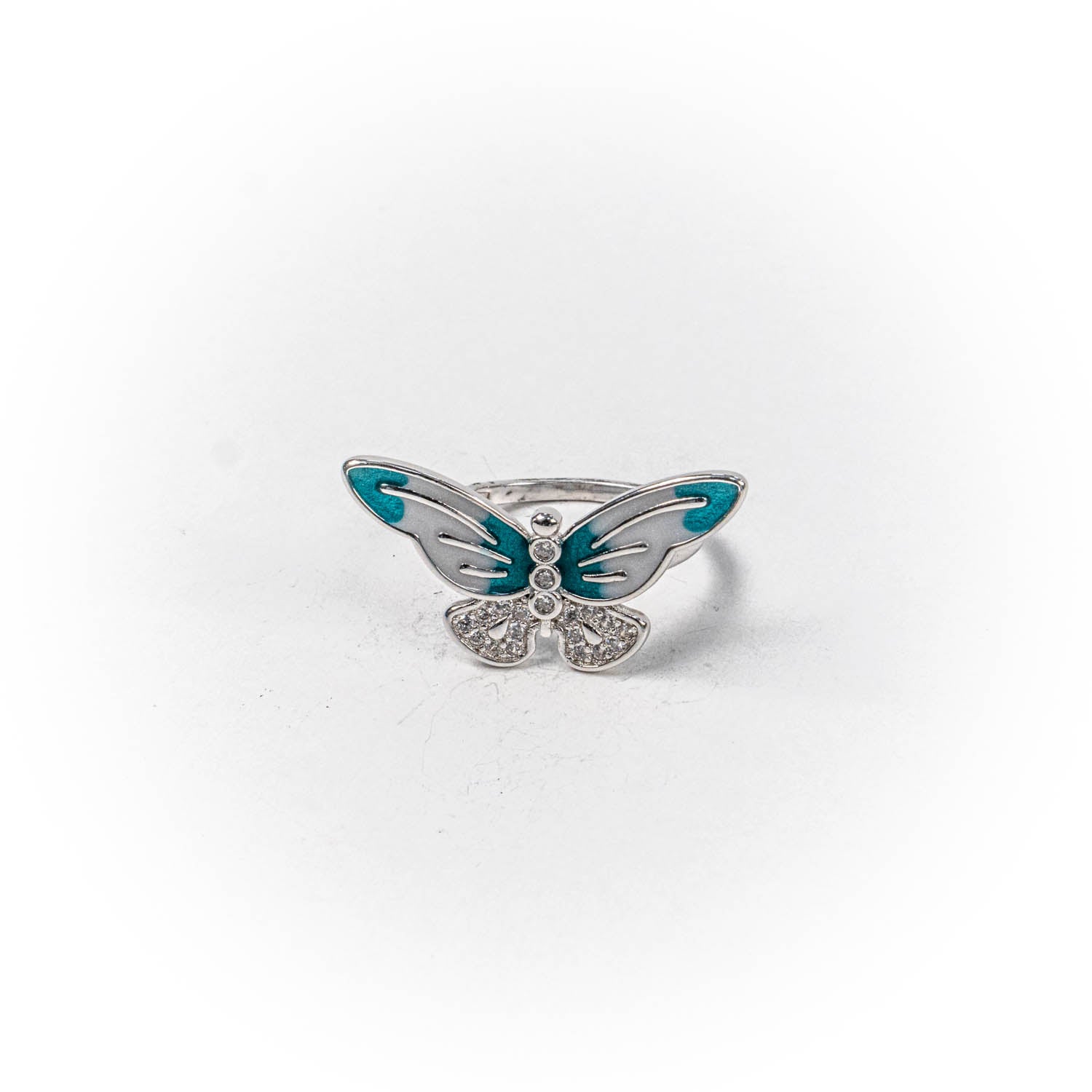 Inelul este decorat cu piatra zirconia si email, care adauga o nota subtila de culoare si distinctie.