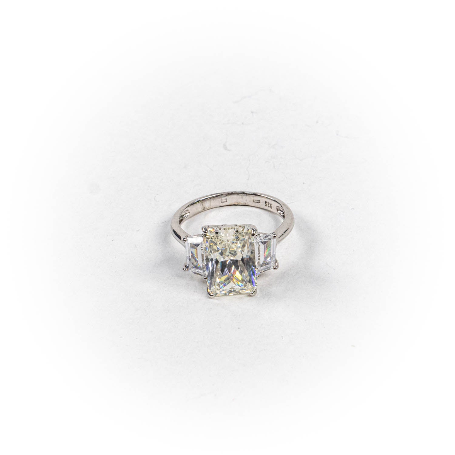 Inelul este decorat cu piatra zirconia, care adauga o nota subtila de culoare si distinctie.