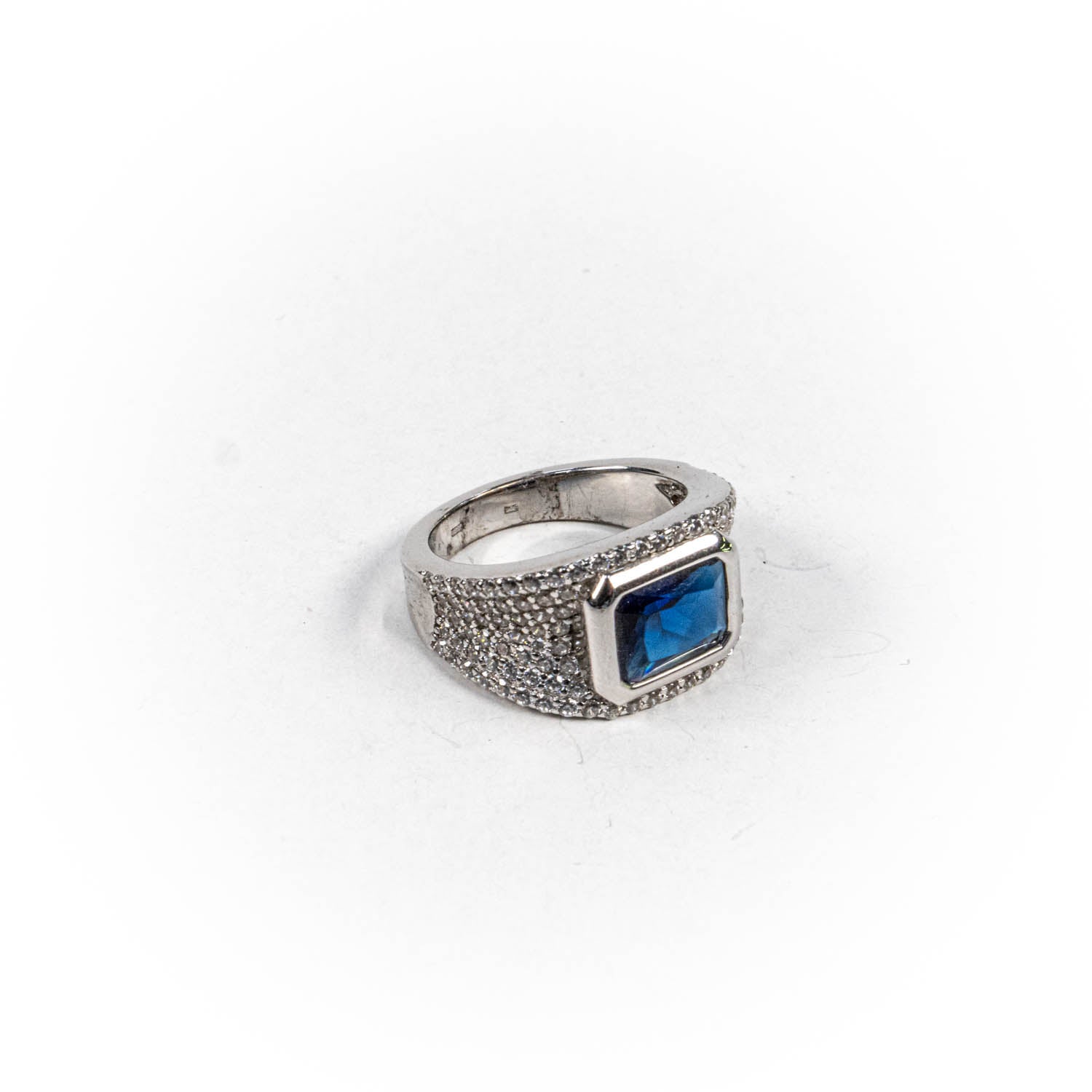 Inelul este decorat cu piatra safir, care adauga o nota subtila de culoare si distinctie.