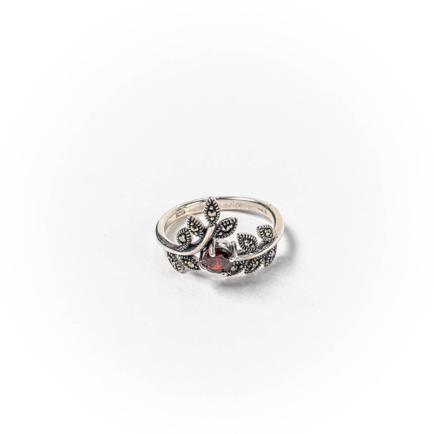 Inelul este decorat cu piatra rubin, care adauga o nota subtila de culoare si distinctie.