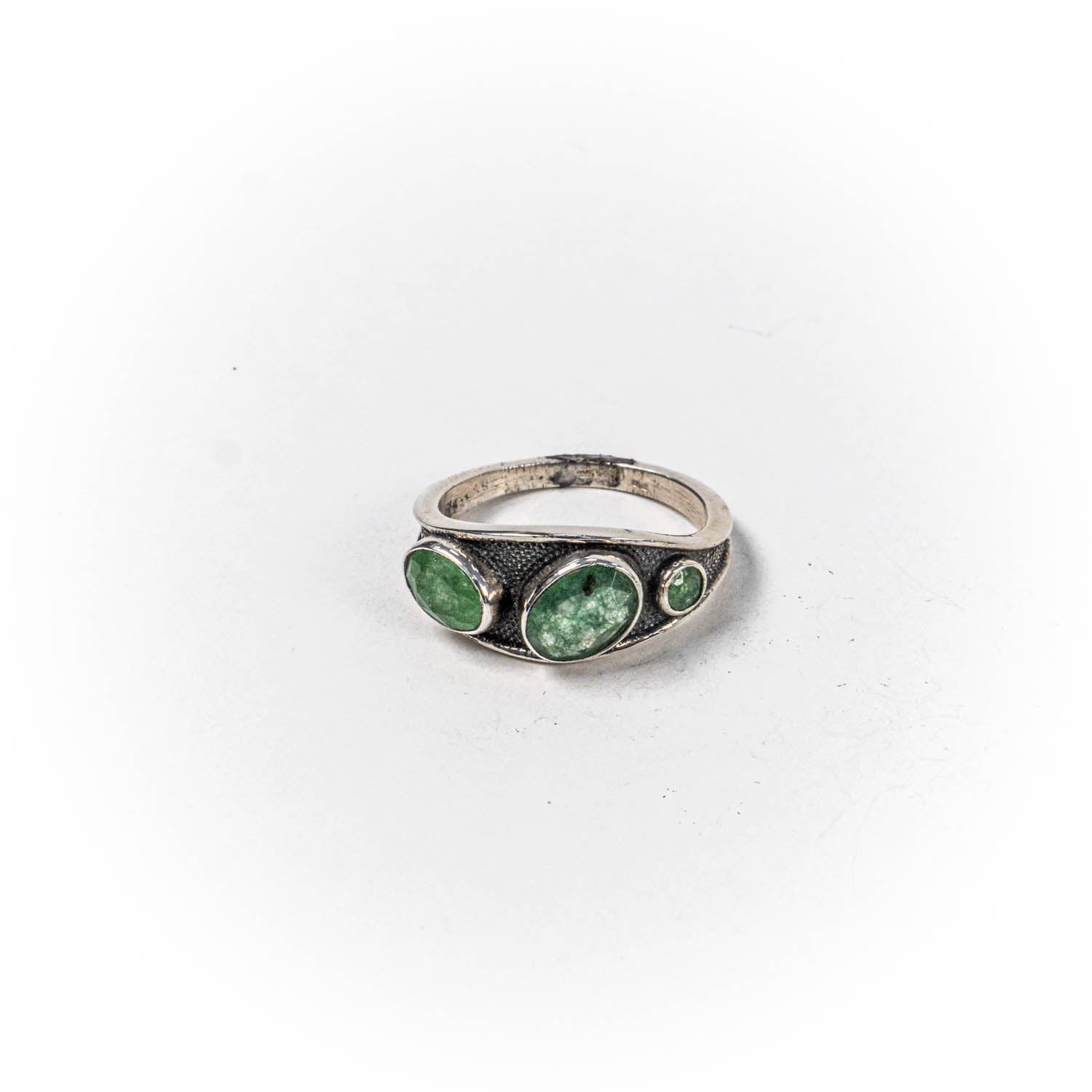 Inelul este decorat cu piatra smarald, care adauga o nota subtila de culoare si distinctie.