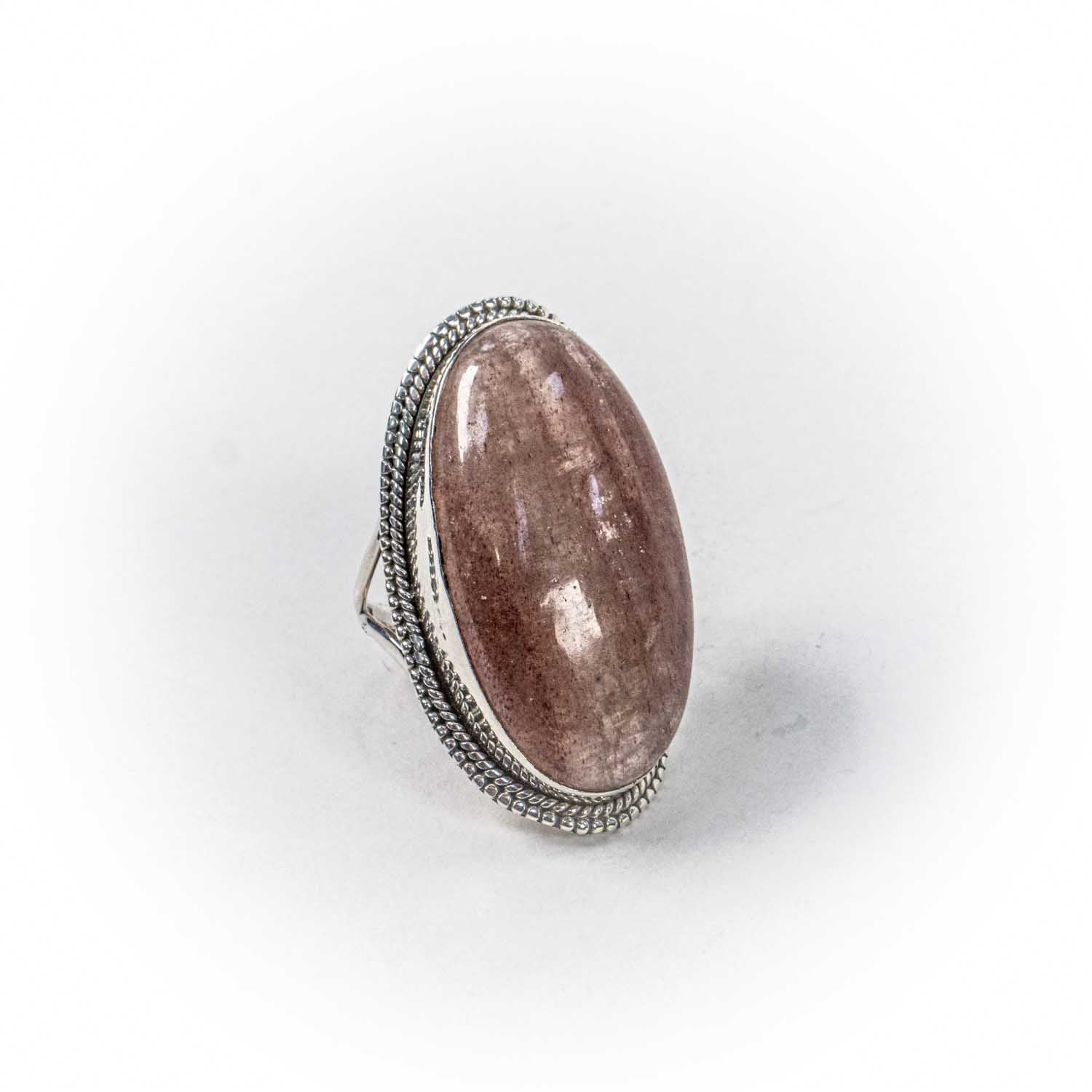 Inelul este decorat cu piatra cuart strawberry, care adauga o nota subtila de culoare si distinctie.