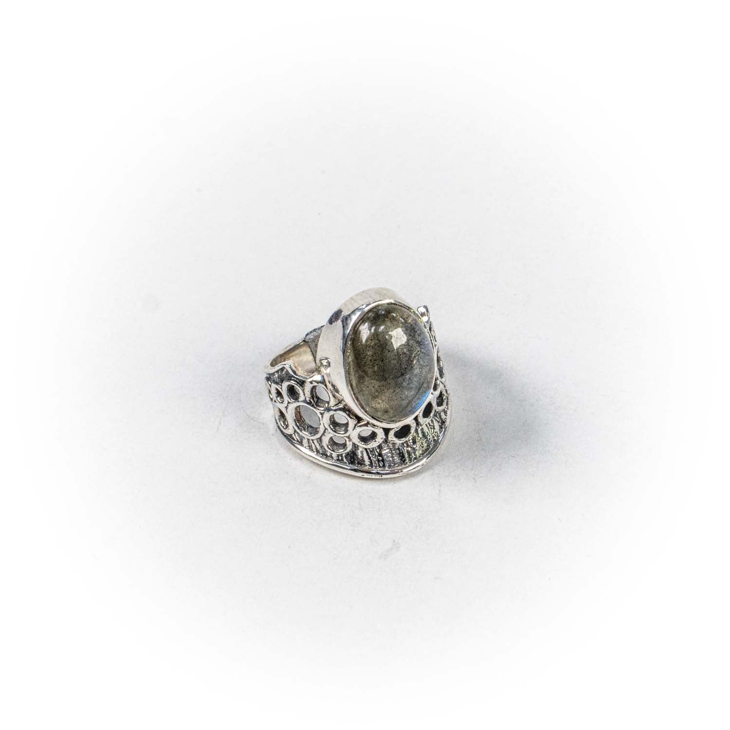 Inelul este decorat cu piatra labradorit, care adauga o nota subtila de culoare si distinctie.