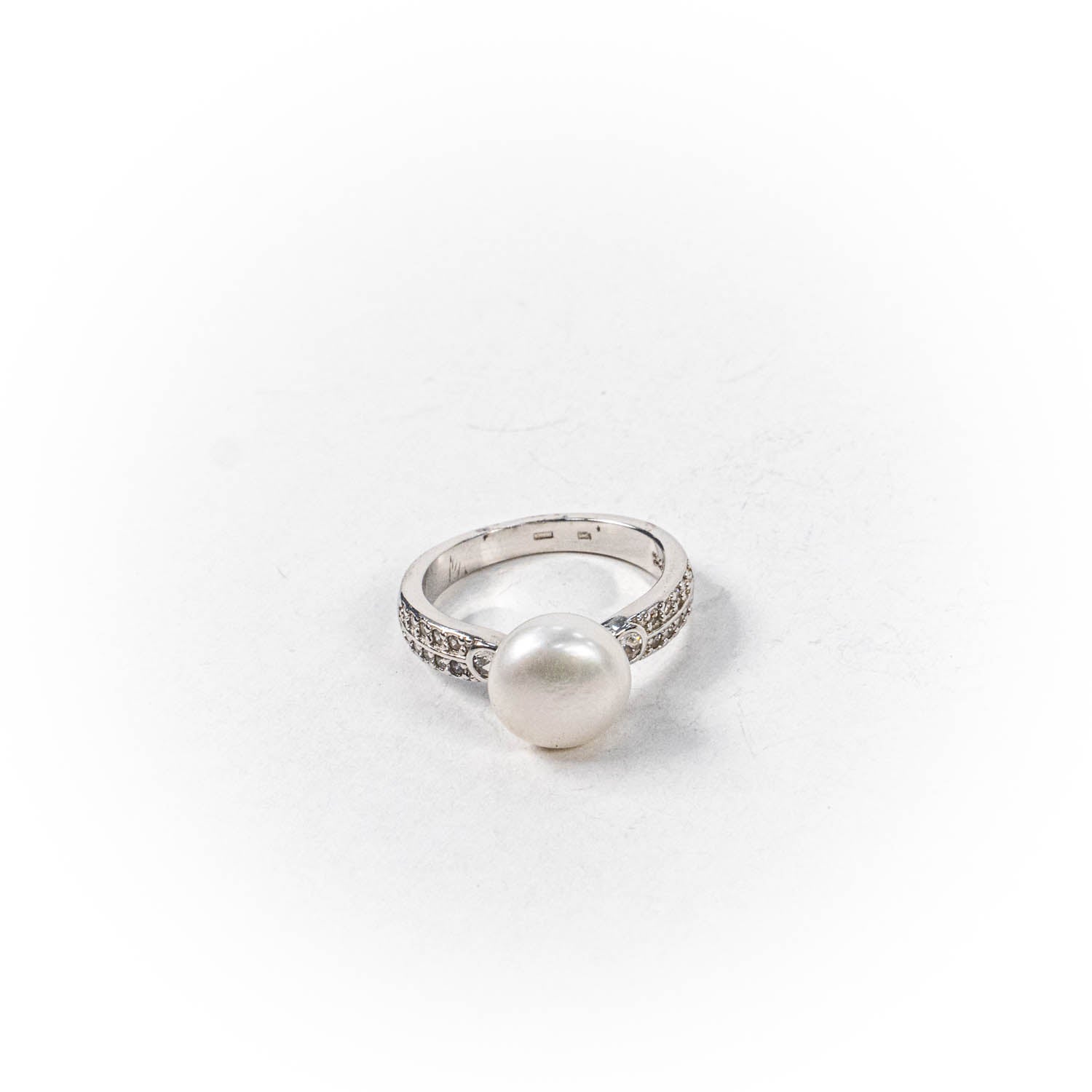 Inelul este decorat cu piatra perla de cultura, care adauga o nota subtila de culoare si distinctie.