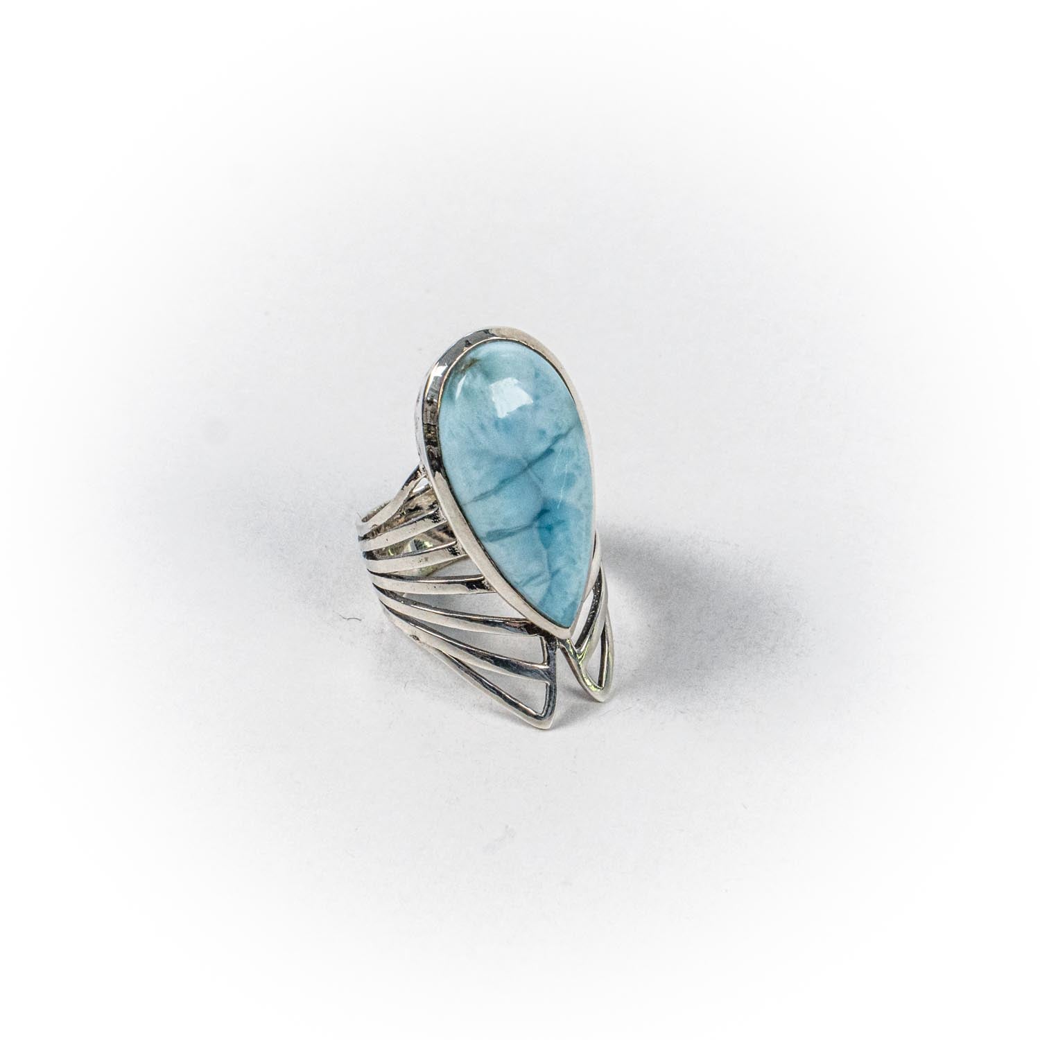 Inelul este decorat cu piatra larimar, care adauga o nota subtila de culoare si distinctie.