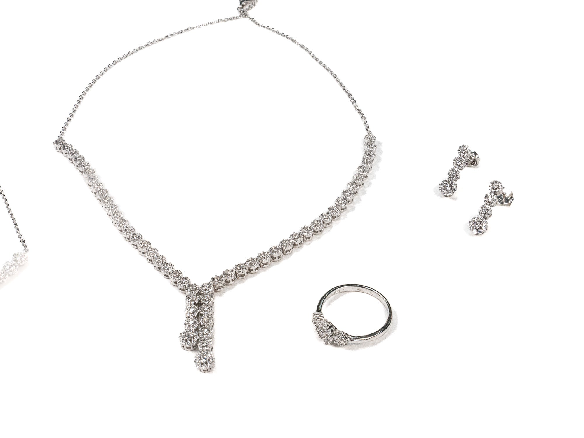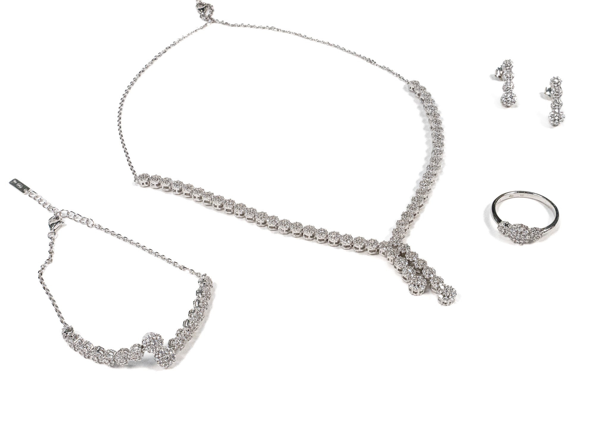 Descopera Set Bijuterii din Argint 925 - Cercei, Inel, Lant, Bratara, un set de bijuterii din Argint 925 compus din cercei, inel, lant, bratara, decorat cu Zirconia, in nuante Argintiu, perfect pentru a adauga eleganta oricarei tinute.