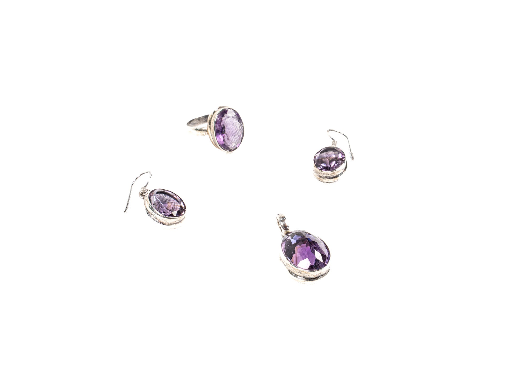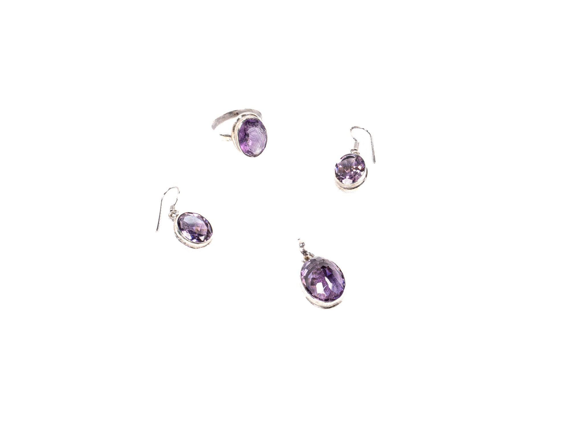 Descopera Set Bijuterii din Argint 925 - Cercei, Inel, Pandantiv, un set de bijuterii din Argint 925 compus din cercei, inel, pandantiv, decorat cu Ametist, in nuante Violet, perfect pentru a adauga eleganta oricarei tinute.