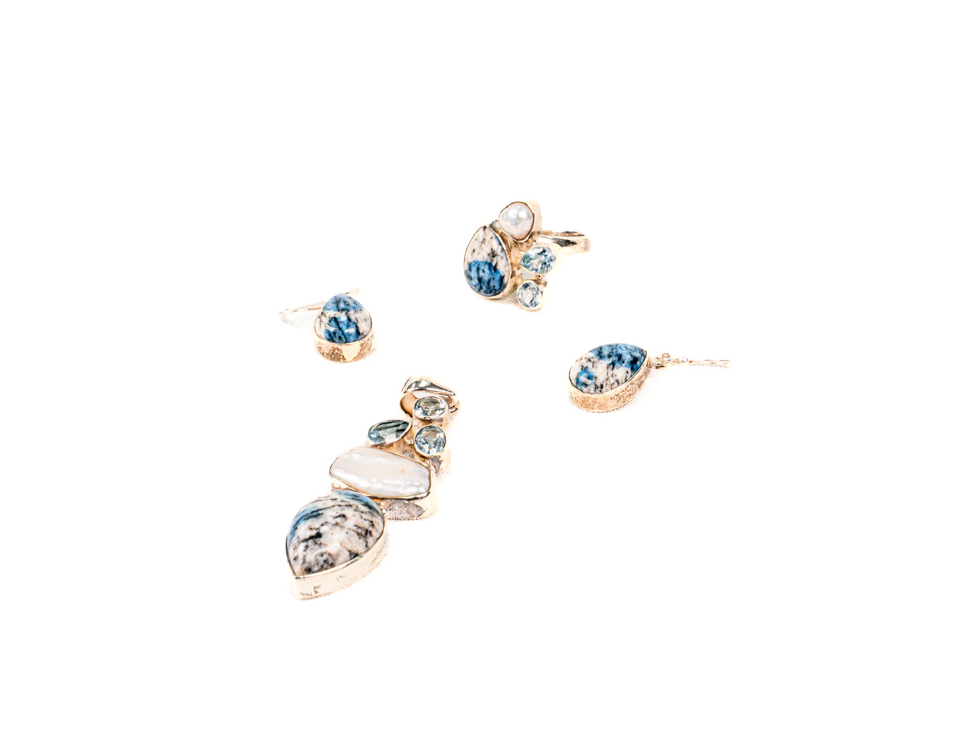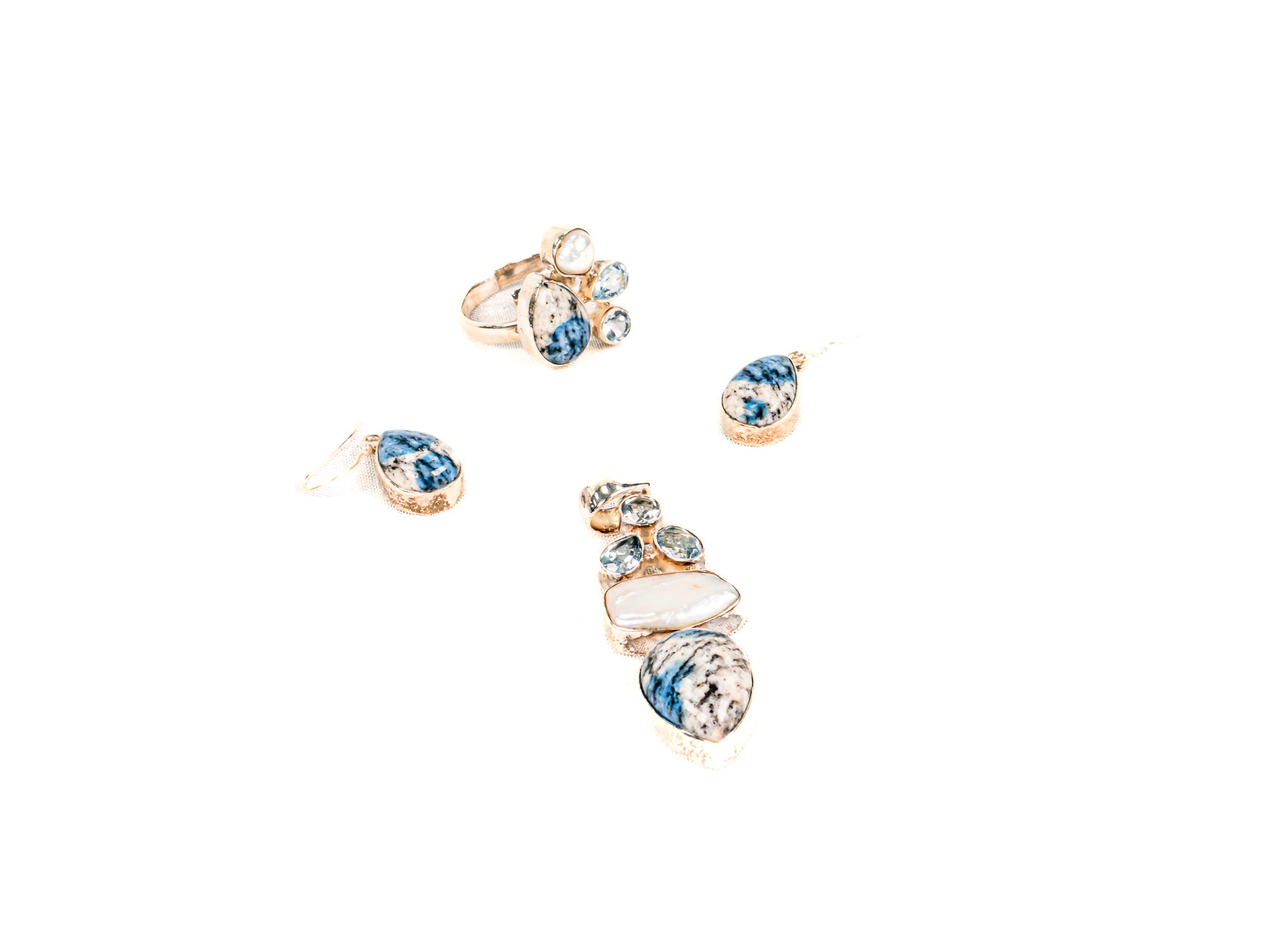 Descopera Set Bijuterii din Argint 925 - Cercei, Inel, Pandantiv, un set de bijuterii din Argint 925 compus din cercei, inel, pandantiv, decorat cu Azurit In Granit, in nuante Bleu, perfect pentru a adauga eleganta oricarei tinute.
