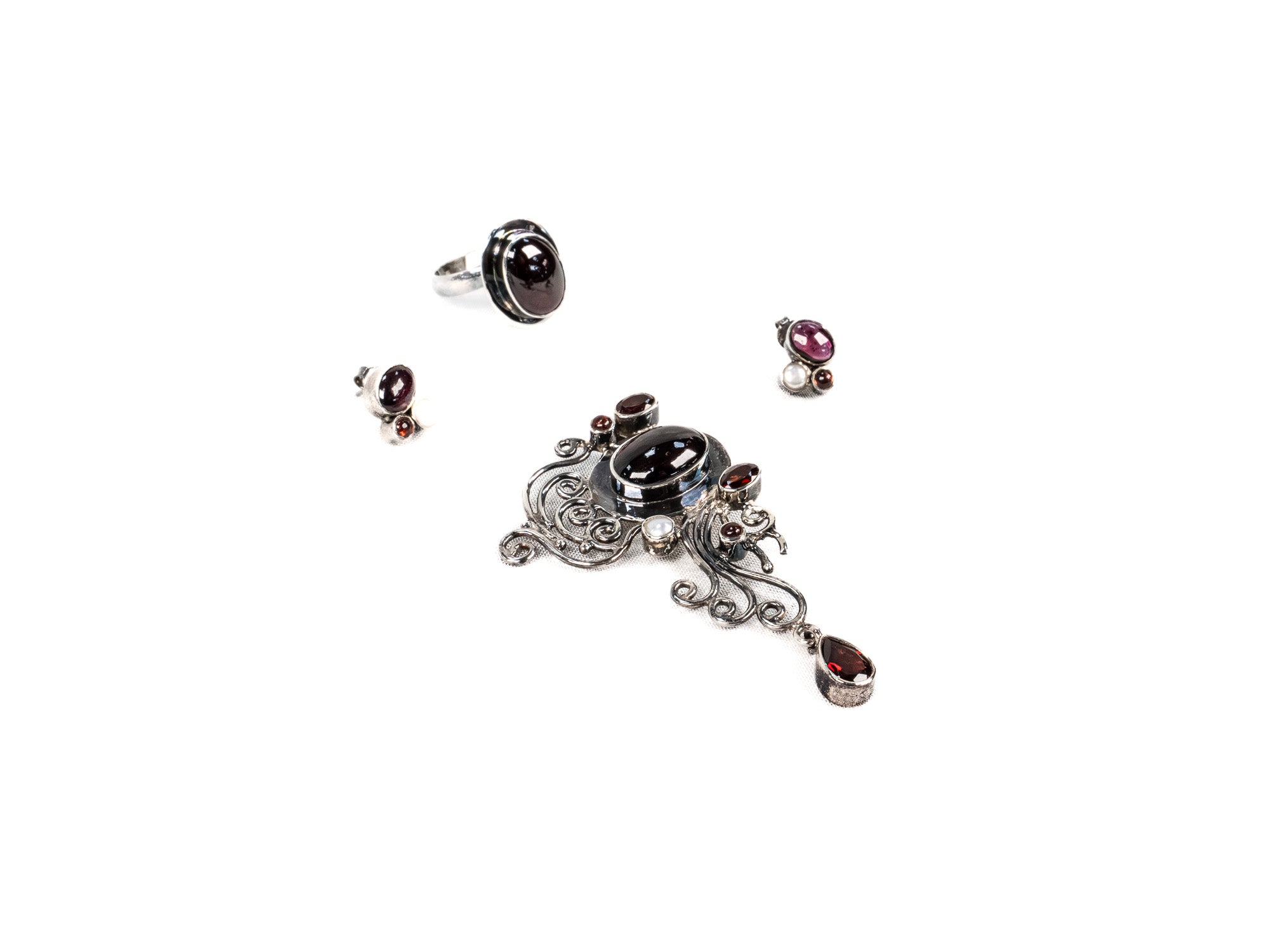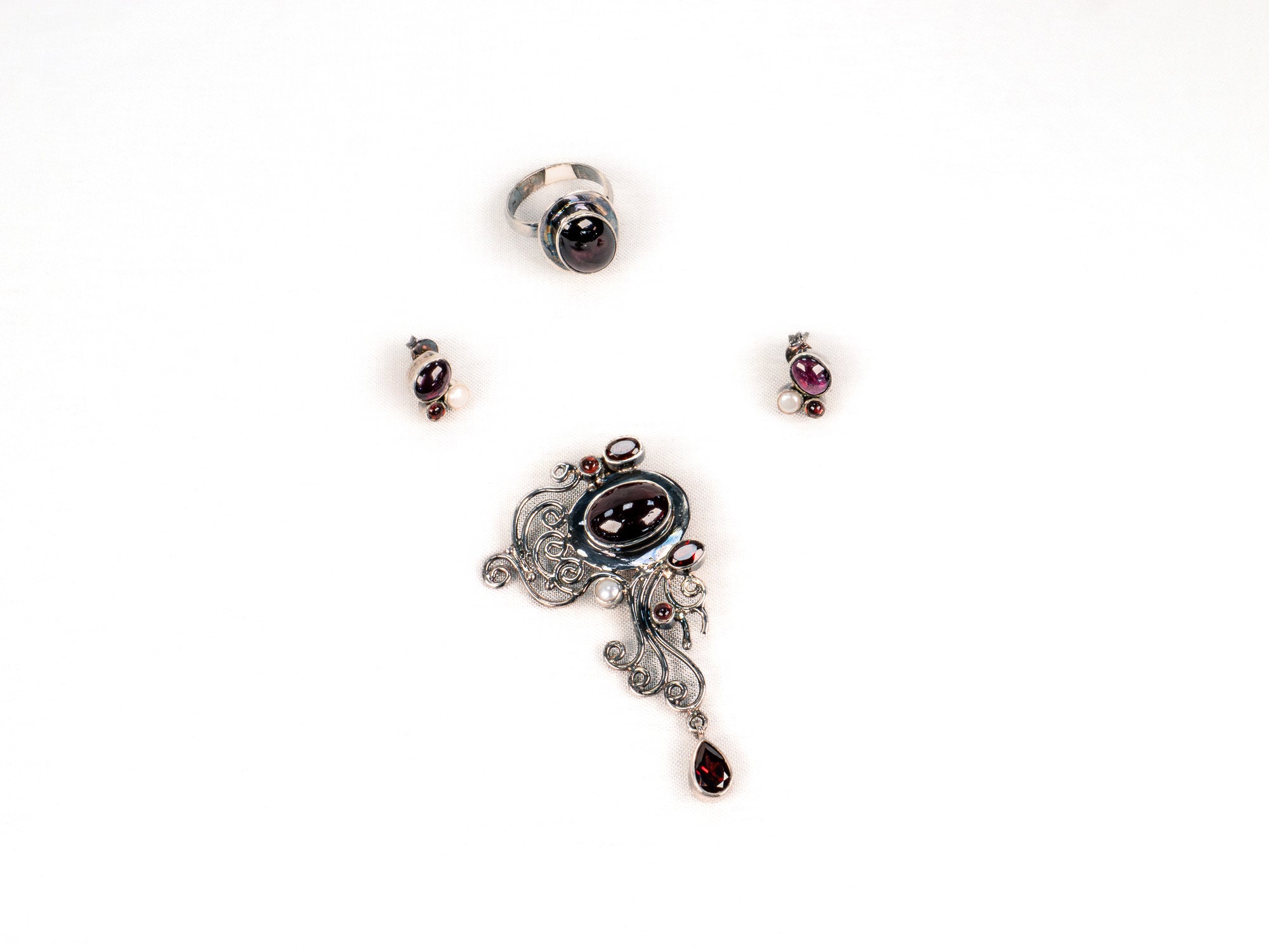 Descopera Set Bijuterii din Argint 925 - Cercei, Inel, Pandantiv, un set de bijuterii din Argint 925 compus din cercei, inel, pandantiv, decorat cu Garnet, Rubin, in nuante Alb, perfect pentru a adauga eleganta oricarei tinute.