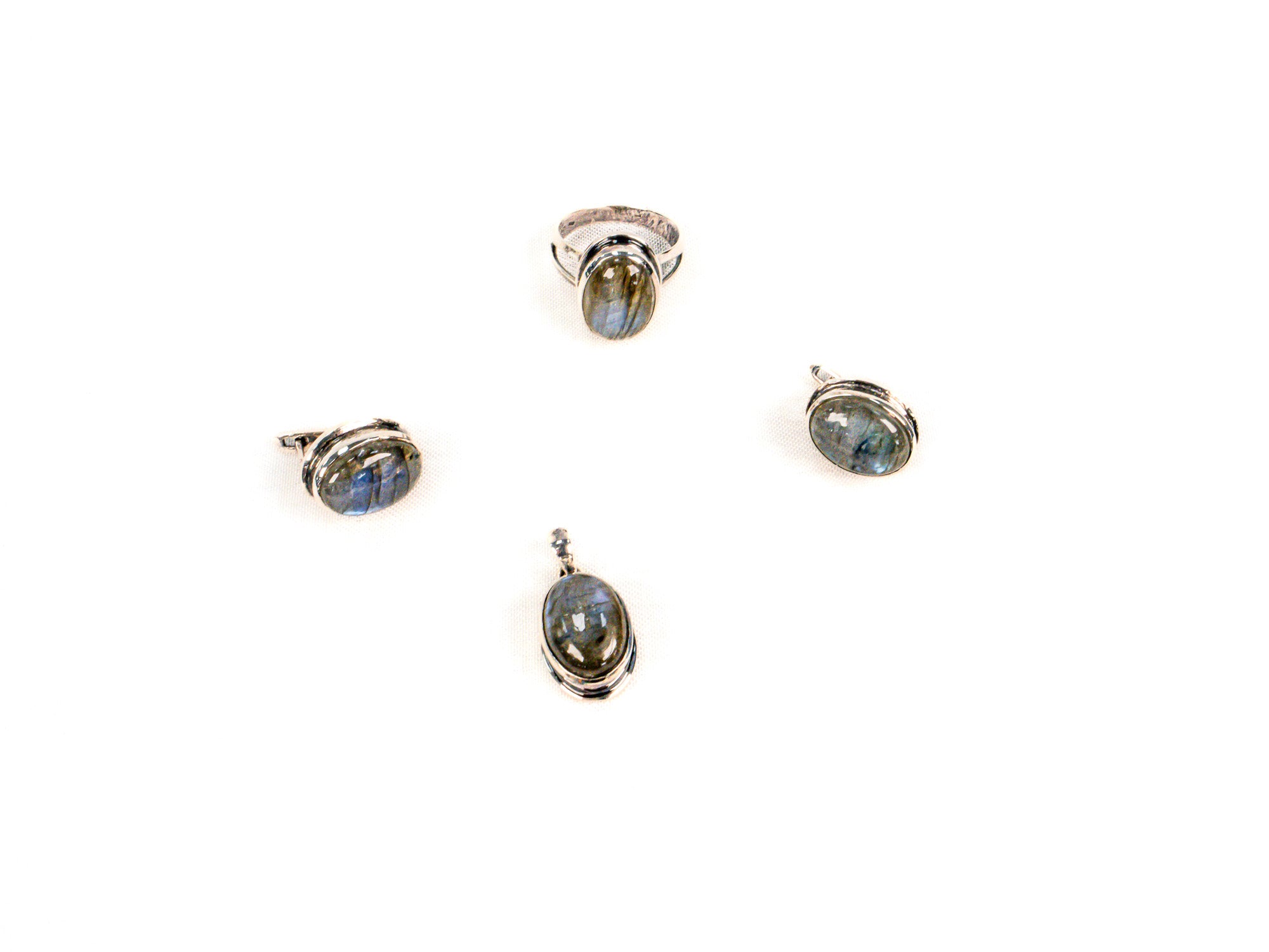 Descopera Set Bijuterii din Argint 925 - Cercei, Inel, Pandantiv, un set de bijuterii din Argint 925 compus din cercei, inel, pandantiv, decorat cu Labradorit, in nuante Albastru, perfect pentru a adauga eleganta oricarei tinute.