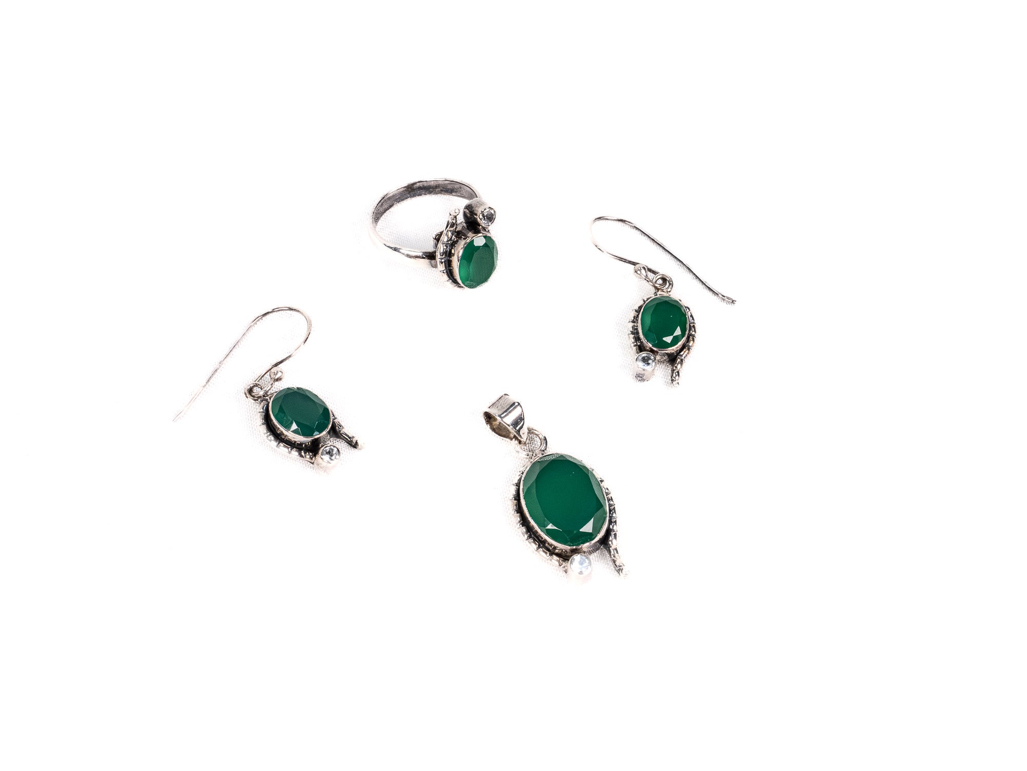 Descopera Set Bijuterii din Argint 925 - Cercei, Inel, Pandantiv, un set de bijuterii din Argint 925 compus din cercei, inel, pandantiv, decorat cu Onix Verde, in nuante Verde, perfect pentru a adauga eleganta oricarei tinute.
