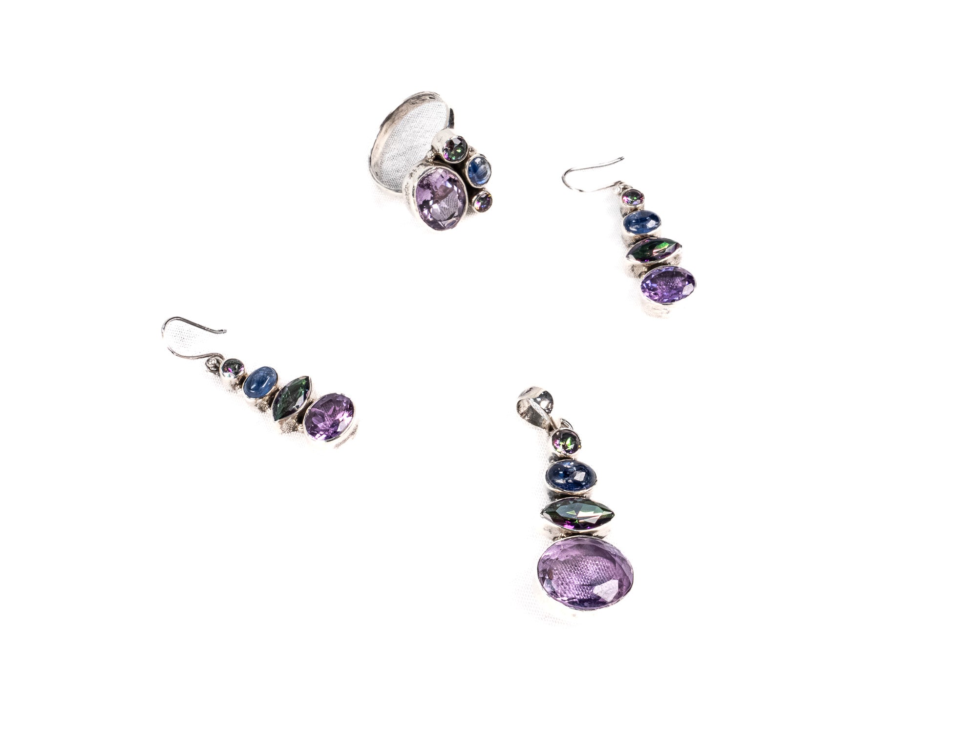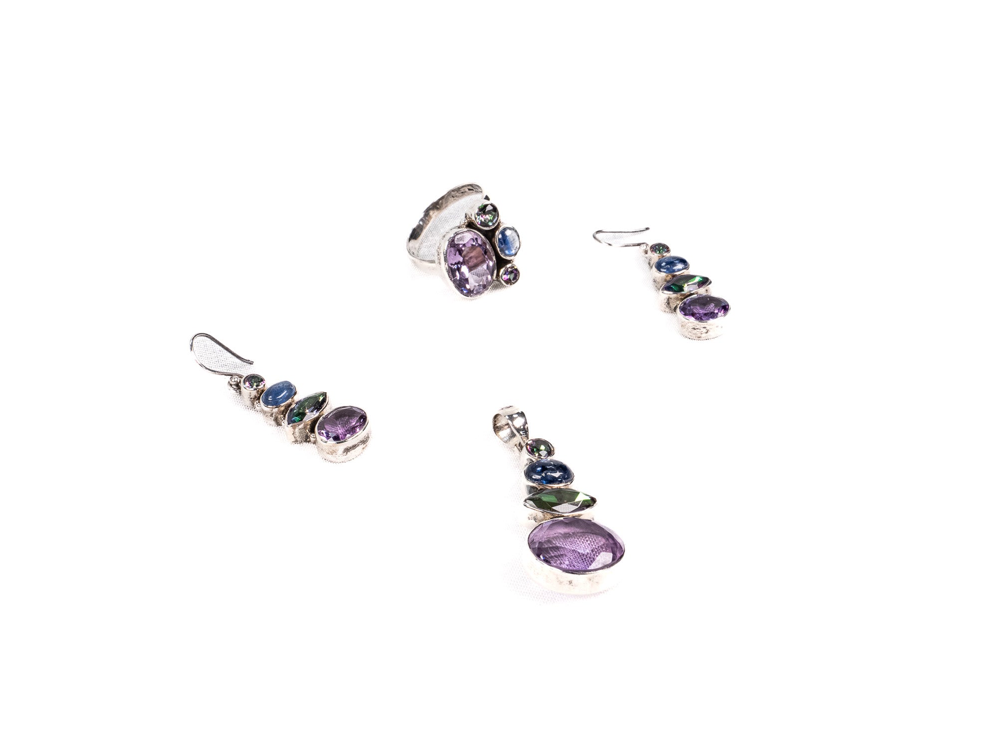 Descopera Set Bijuterii din Argint 925 - Cercei, Inel, Pandantiv, un set de bijuterii din Argint 925 compus din cercei, inel, pandantiv, decorat cu Topaz, Cianit, in nuante Albastru, perfect pentru a adauga eleganta oricarei tinute.