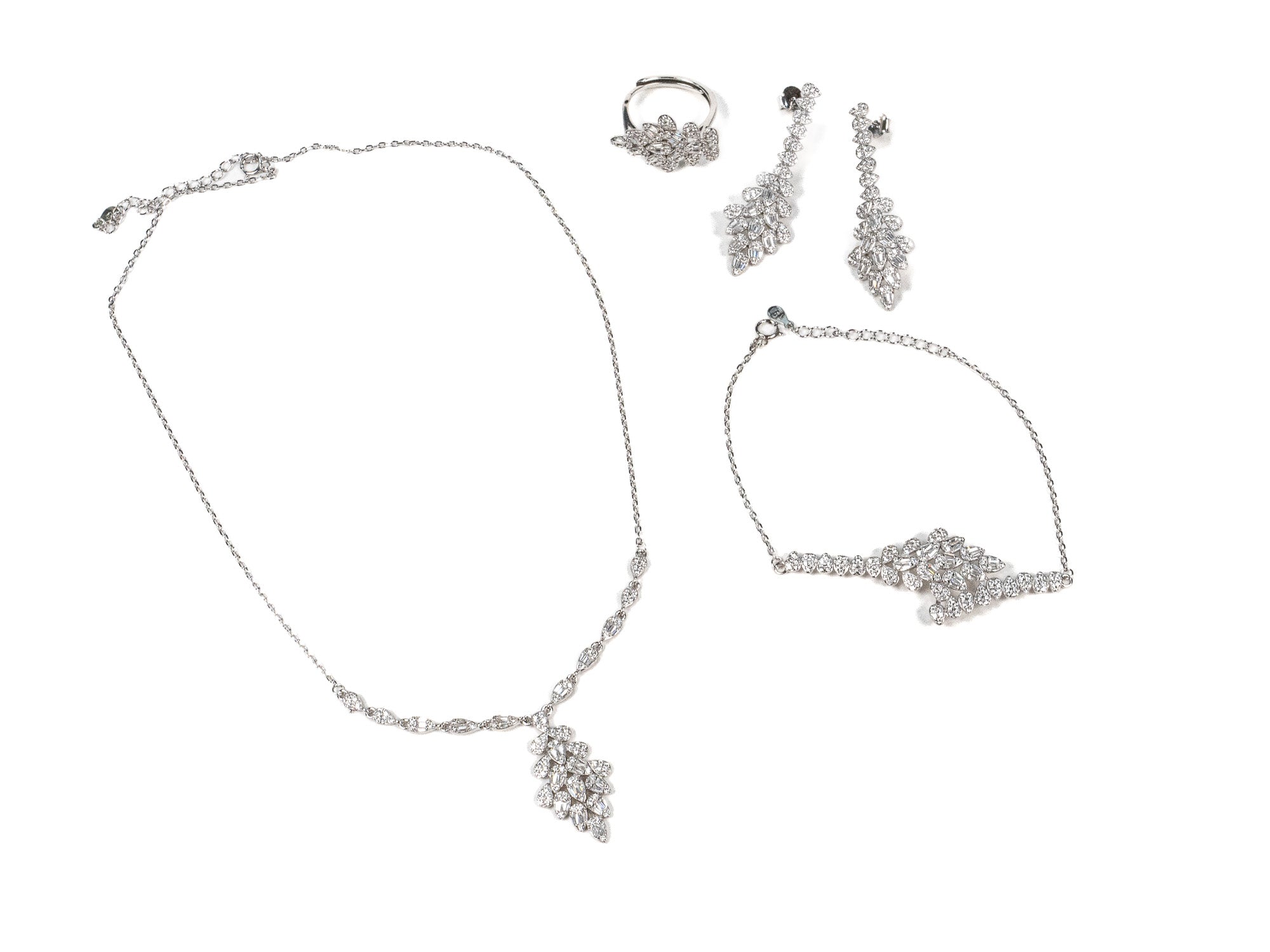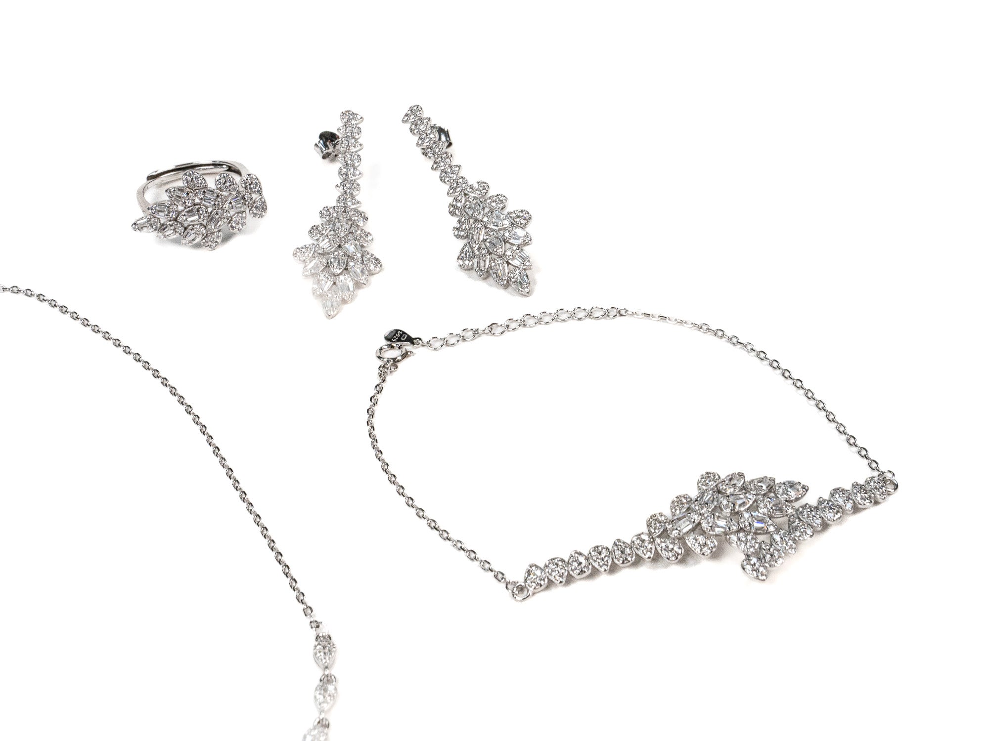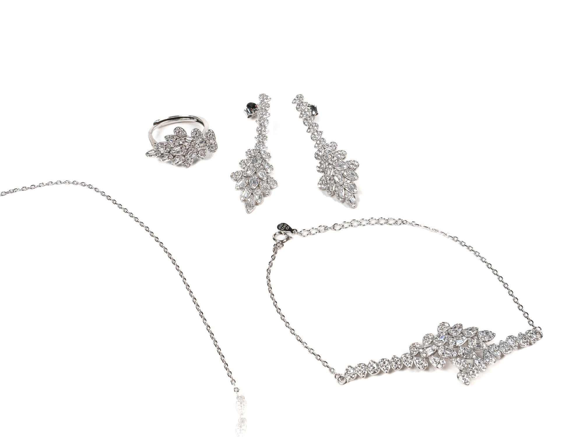 Descopera Set Bijuterii din Argint 925 - Cercei, Lant, Inel, Bratara, un set de bijuterii din Argint 925 compus din cercei, lant, inel, bratara, decorat cu Zirconia, in nuante Argintiu, perfect pentru a adauga eleganta oricarei tinute.