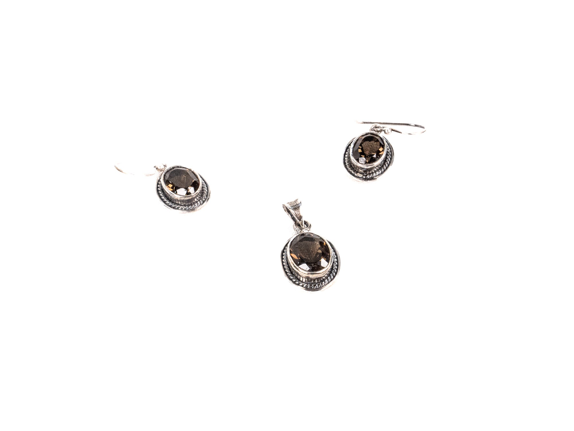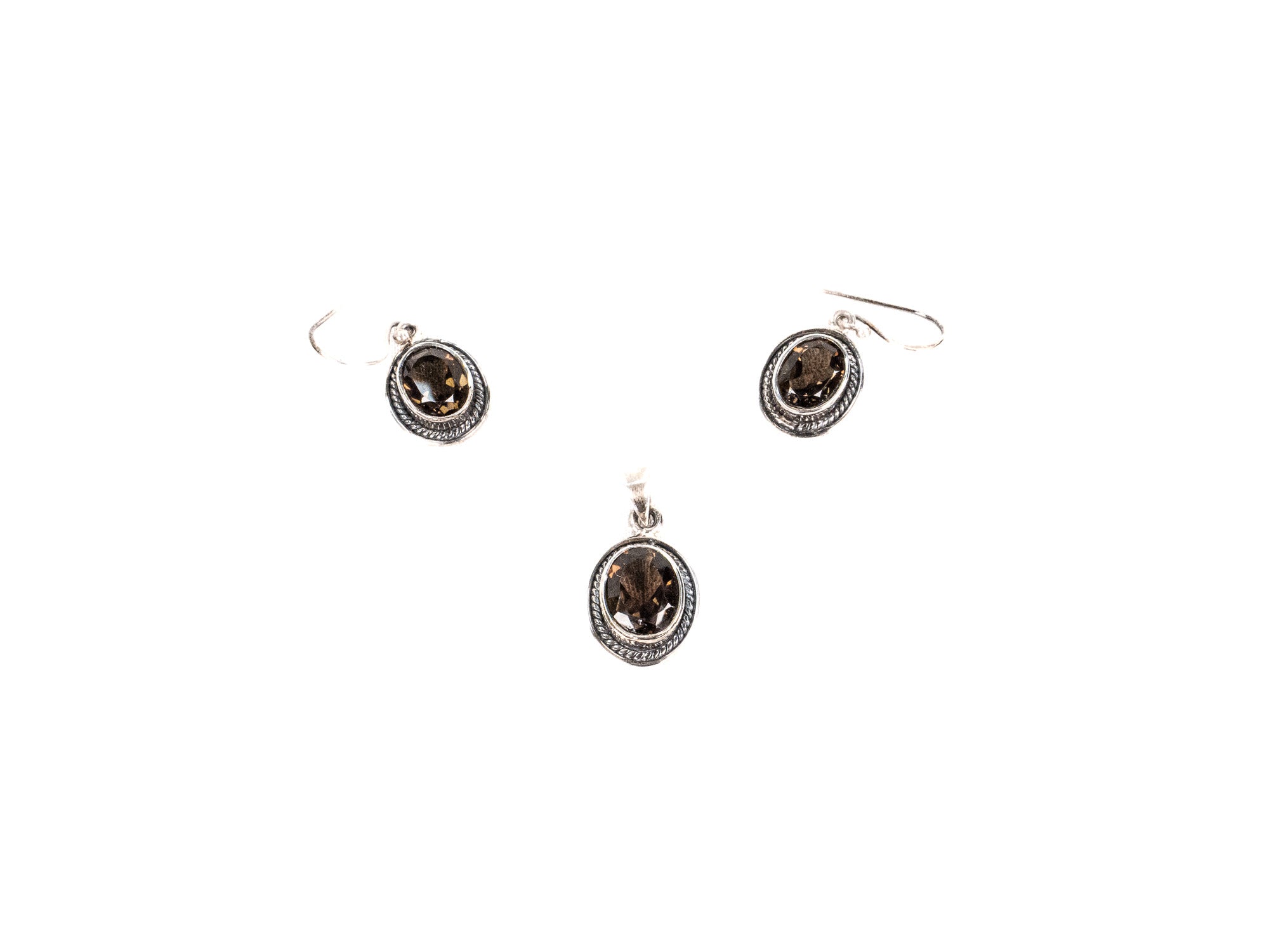 Descopera Set Bijuterii din Argint 925 - Cercei, Pandantiv, un set de bijuterii din Argint 925 compus din cercei, pandantiv, decorat cu Cuart Fumuriu, in nuante Maro, perfect pentru a adauga eleganta oricarei tinute.