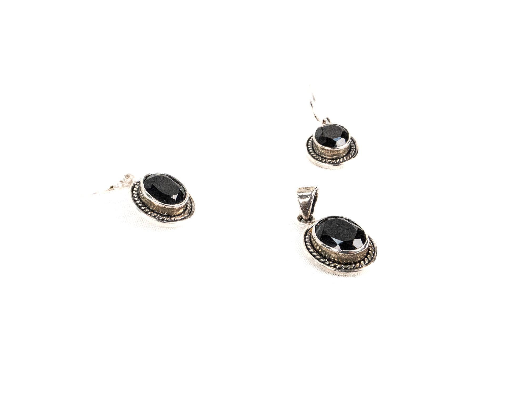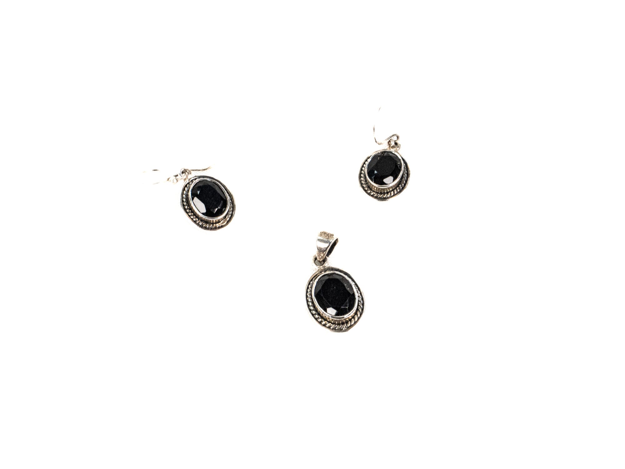 Descopera Set Bijuterii din Argint 925 - Cercei, Pandantiv, un set de bijuterii din Argint 925 compus din cercei, pandantiv, decorat cu Onix Fatetat, in nuante Negru, perfect pentru a adauga eleganta oricarei tinute.