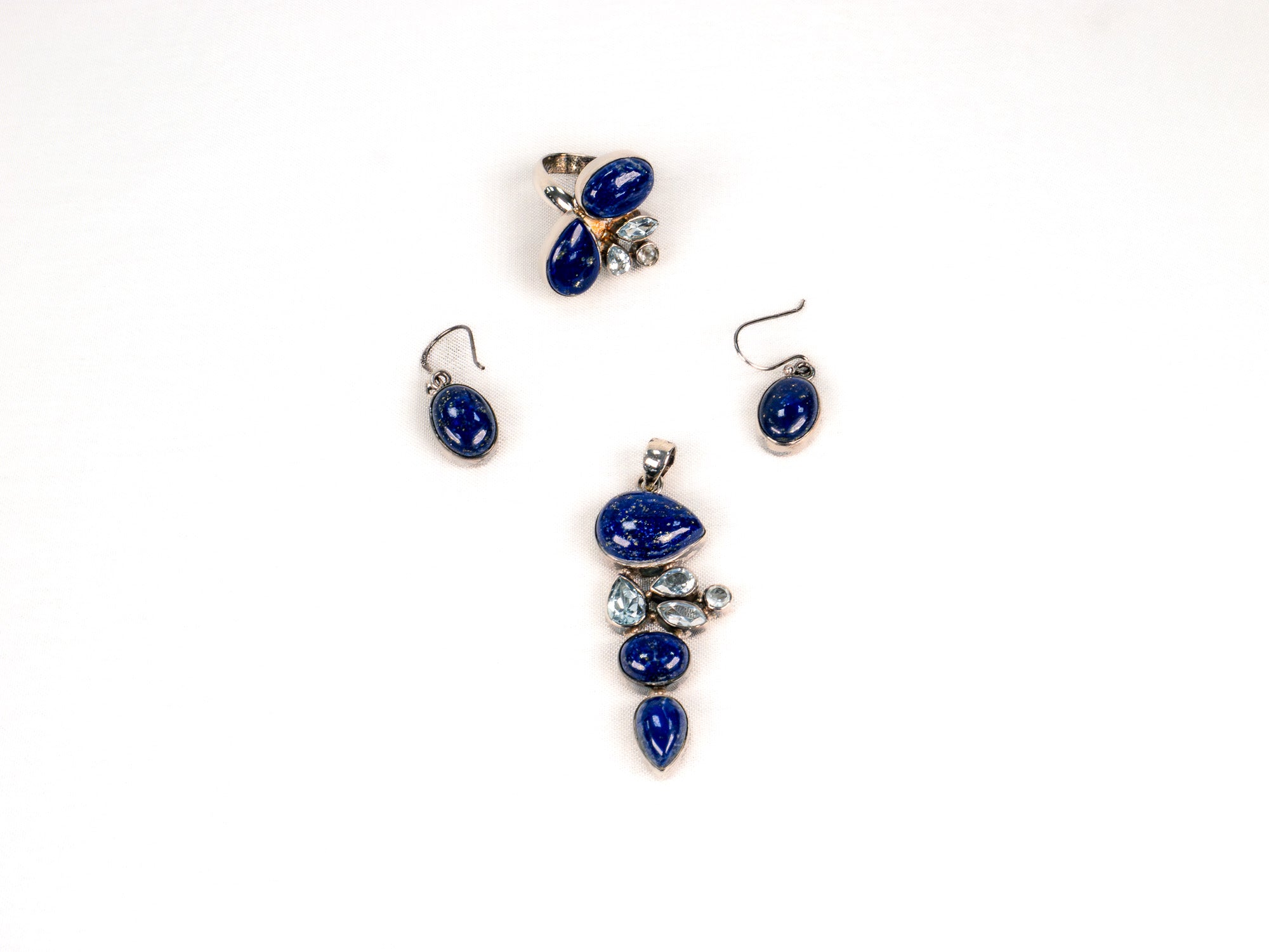 Descopera Set Bijuterii din Argint 925 - Inel, Pandantiv, Cercei, un set de bijuterii din Argint 925 compus din inel, pandantiv, cercei, decorat cu Lapis Lazuli, Aquamarine, in nuante Bleu, perfect pentru a adauga eleganta oricarei tinute.