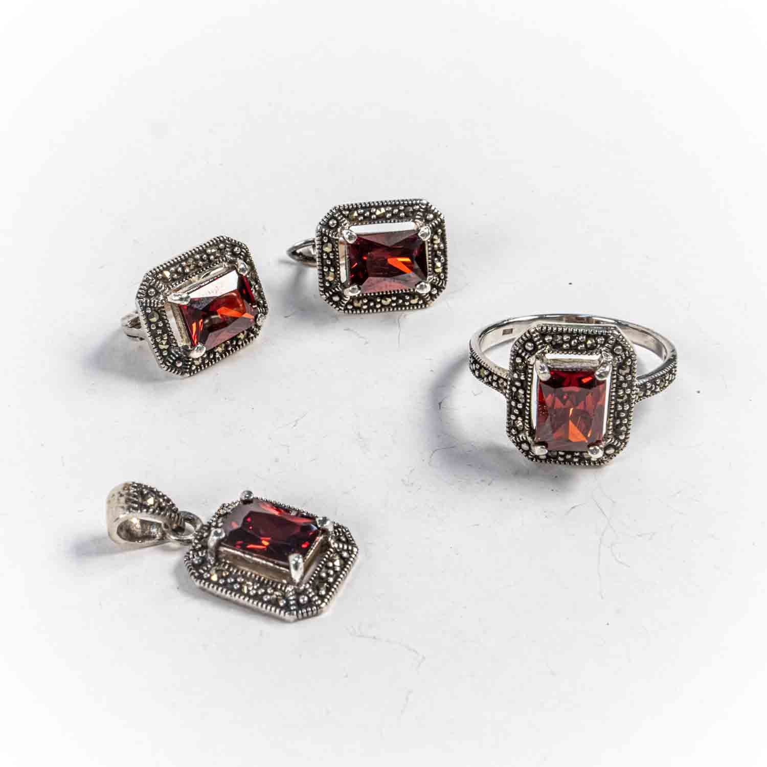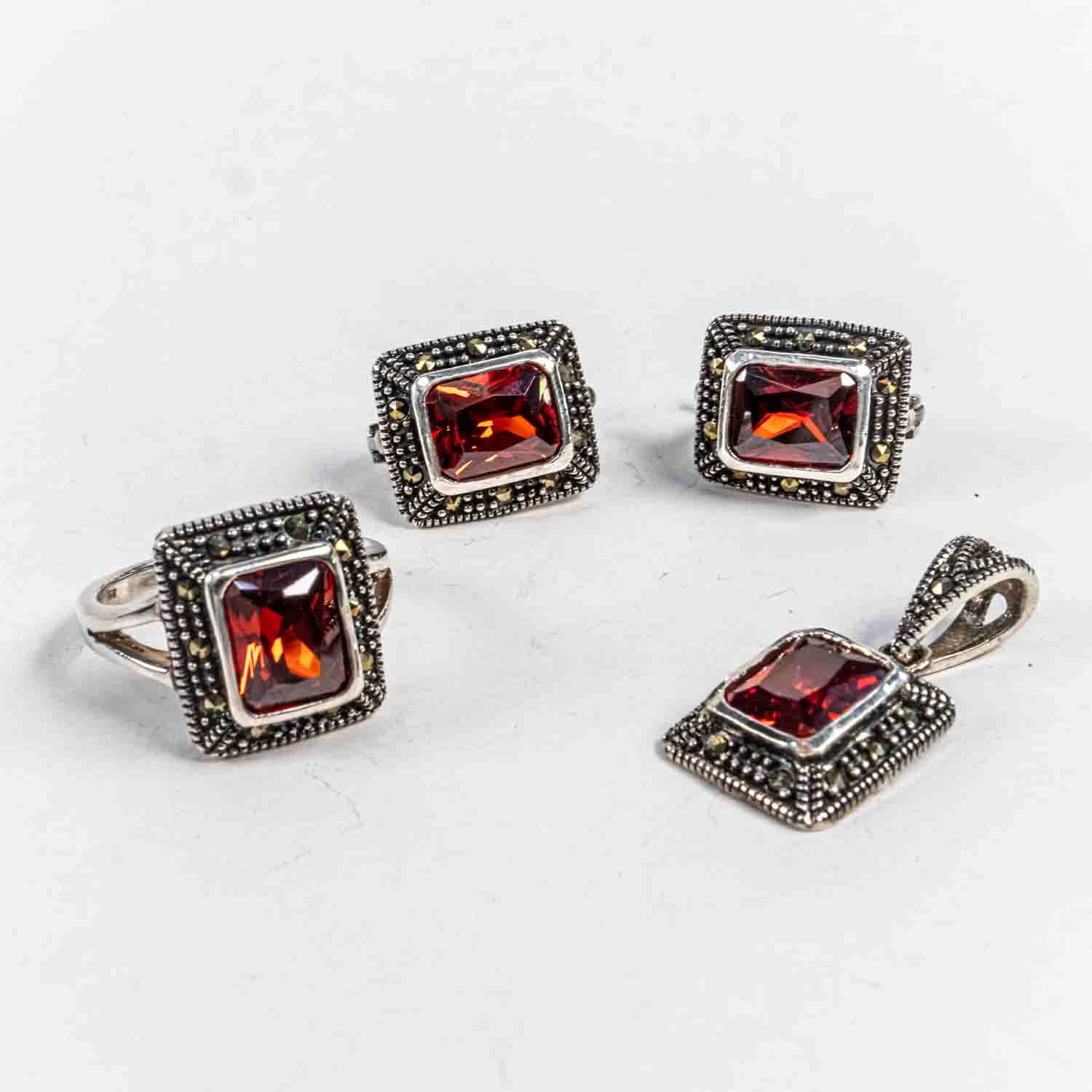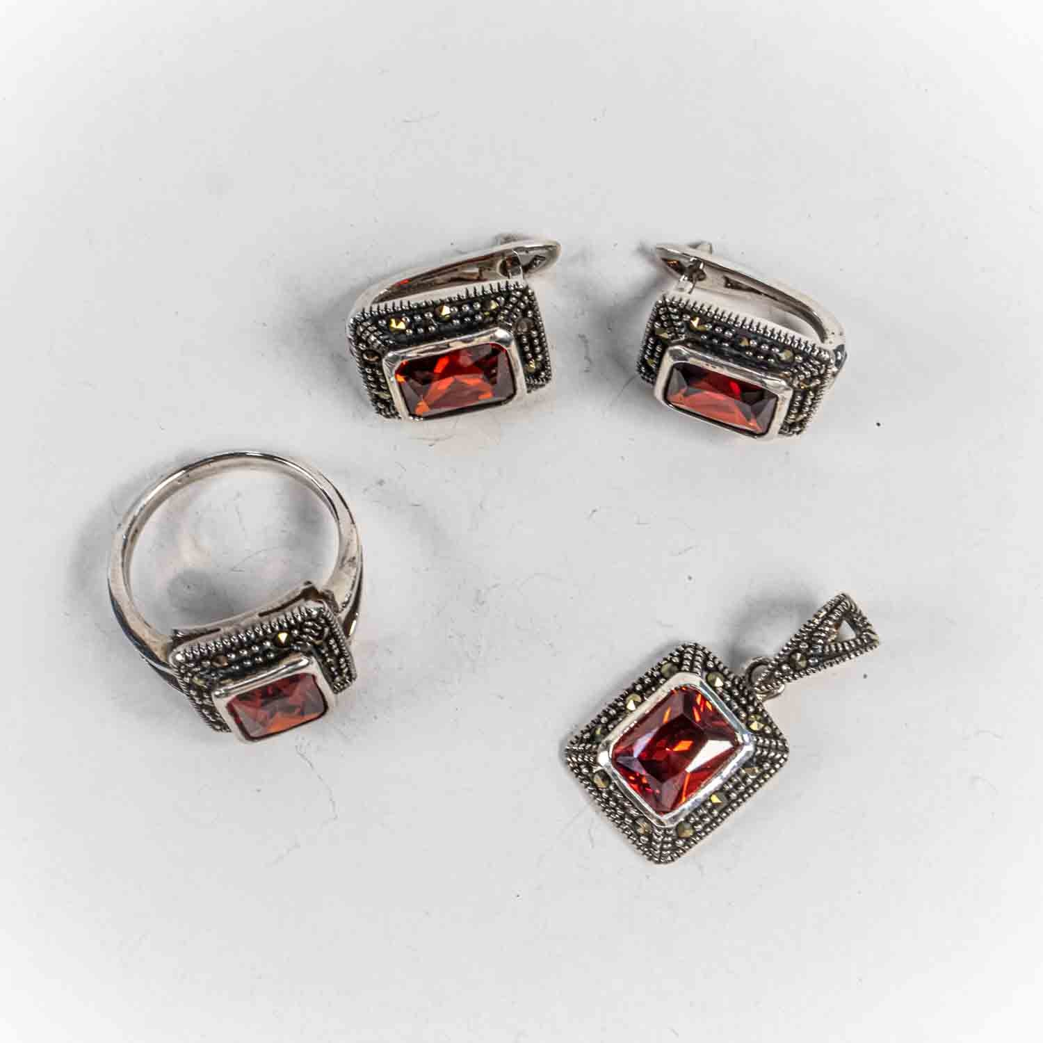Descopera Set Bijuterii STILL Argint 925 - Pandantiv, Inel, Cercei, Granit si Marcasite, Marime Inel 7, Rosu, un set de bijuterii din Argint 925 compus din pandantiv, cercei si inel, decorat cu Granit si Marcasite, , disponibil la marimea 7 in nuante , Rosu, perfect pentru a adauga eleganta oricarei tinute.