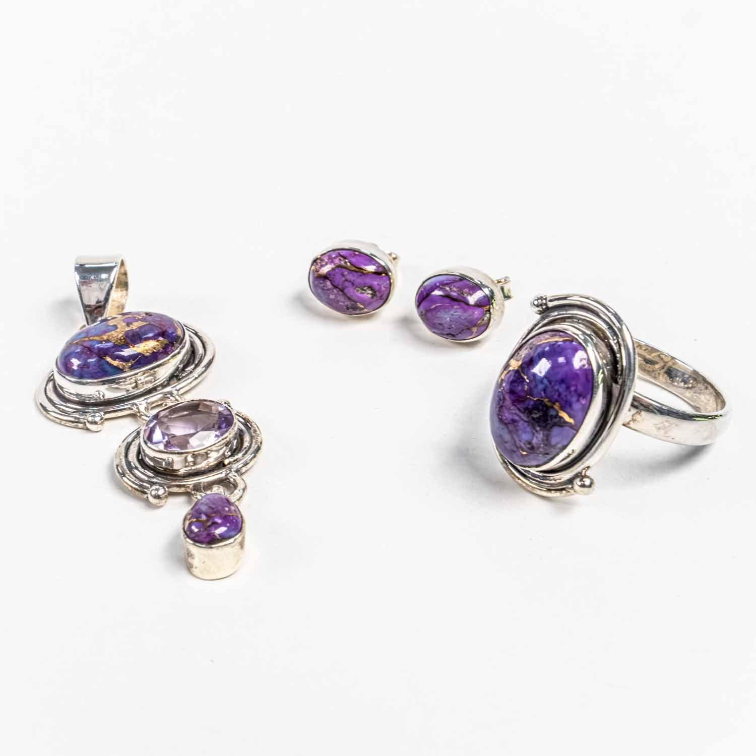 Descopera Set Bijuterii STILL Argint 925 - Pandantiv, Inel, Cercei, Turcoaz, Inel Reglabil, Mov, un set de bijuterii din Argint 925 compus din pandantiv, cercei si inel, decorat cu Turcoaz, , disponibil la marimea Reglabil, in nuante Mov, perfect pentru a adauga eleganta oricarei tinute.