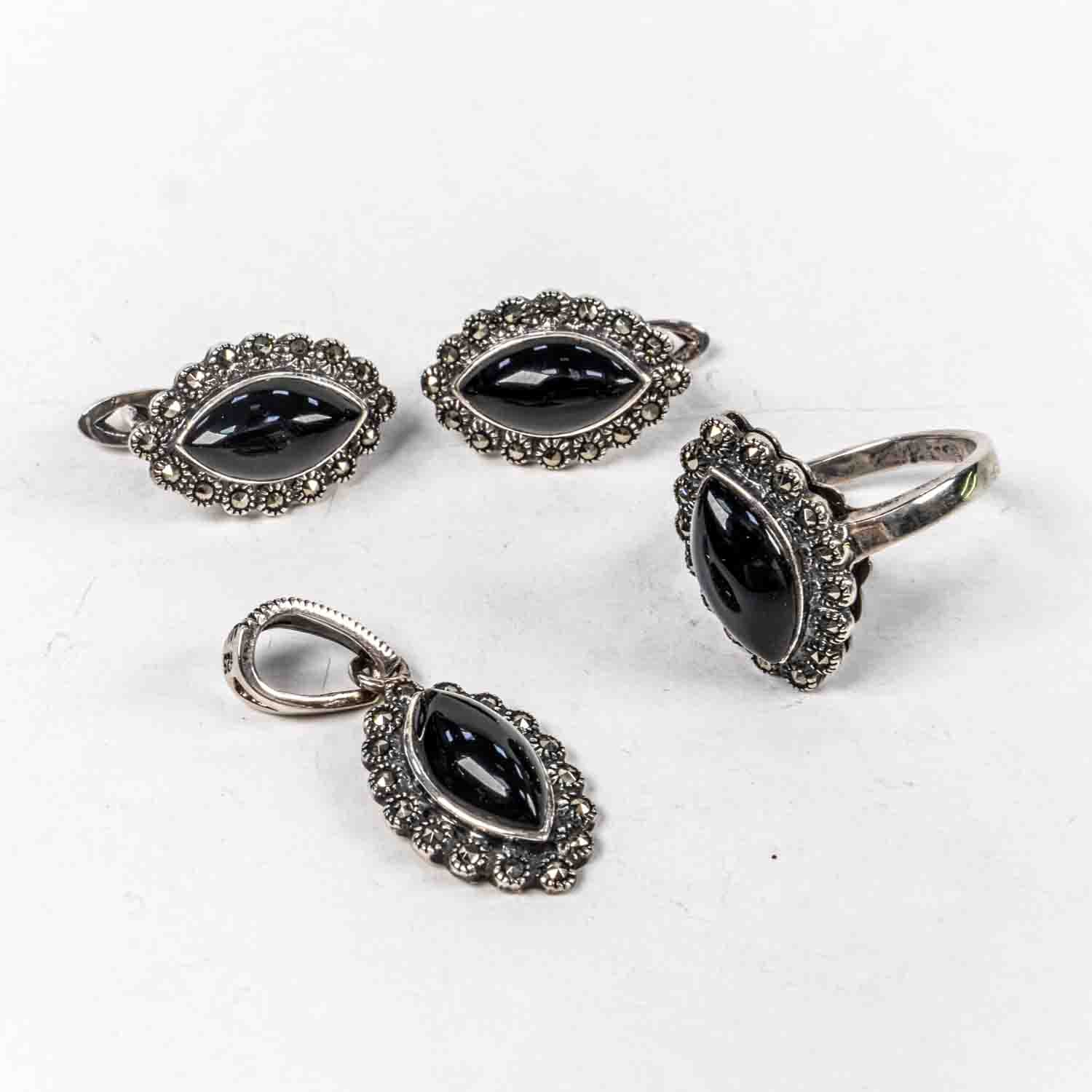 Descopera Set Bijuterii STILL Argint 925 - Pandantiv, Cercei, Onix si Marcasite, Negru, un set de bijuterii din Argint 925 compus din pandantiv si cercei, decorat cu Onix si Marcasite, in nuante Negru, perfect pentru a adauga eleganta oricarei tinute.
