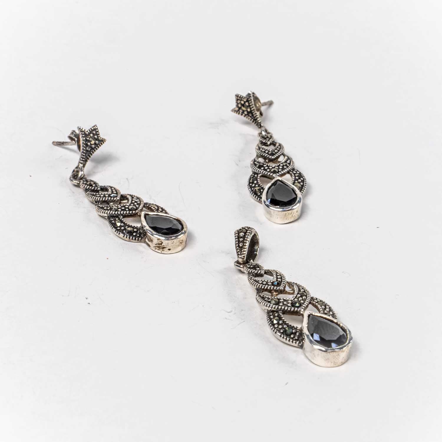 Descopera Set Bijuterii STILL Argint 925 - Pandantiv, Cercei, Zirconia si Marcasite, Negru, un set de bijuterii din Argint 925 compus din pandantiv si cercei, decorat cu Zirconia si Marcasite, in nuante Negru, perfect pentru a adauga eleganta oricarei tinute.
