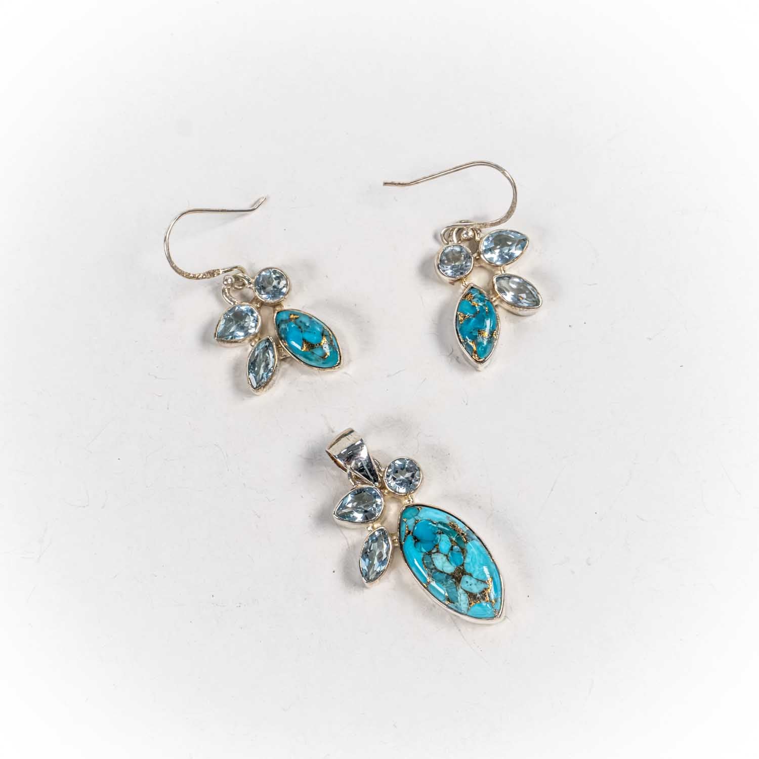 Descopera Set Bijuterii STILL Argint 925 - Pandantiv, Cercei, Turcoaz si Aquamarin, albastru, un set de bijuterii din Argint 925 compus din pandantiv si cercei, decorat cu Turcoaz si Aquamarin, in nuante albastru, perfect pentru a adauga eleganta oricarei tinute.