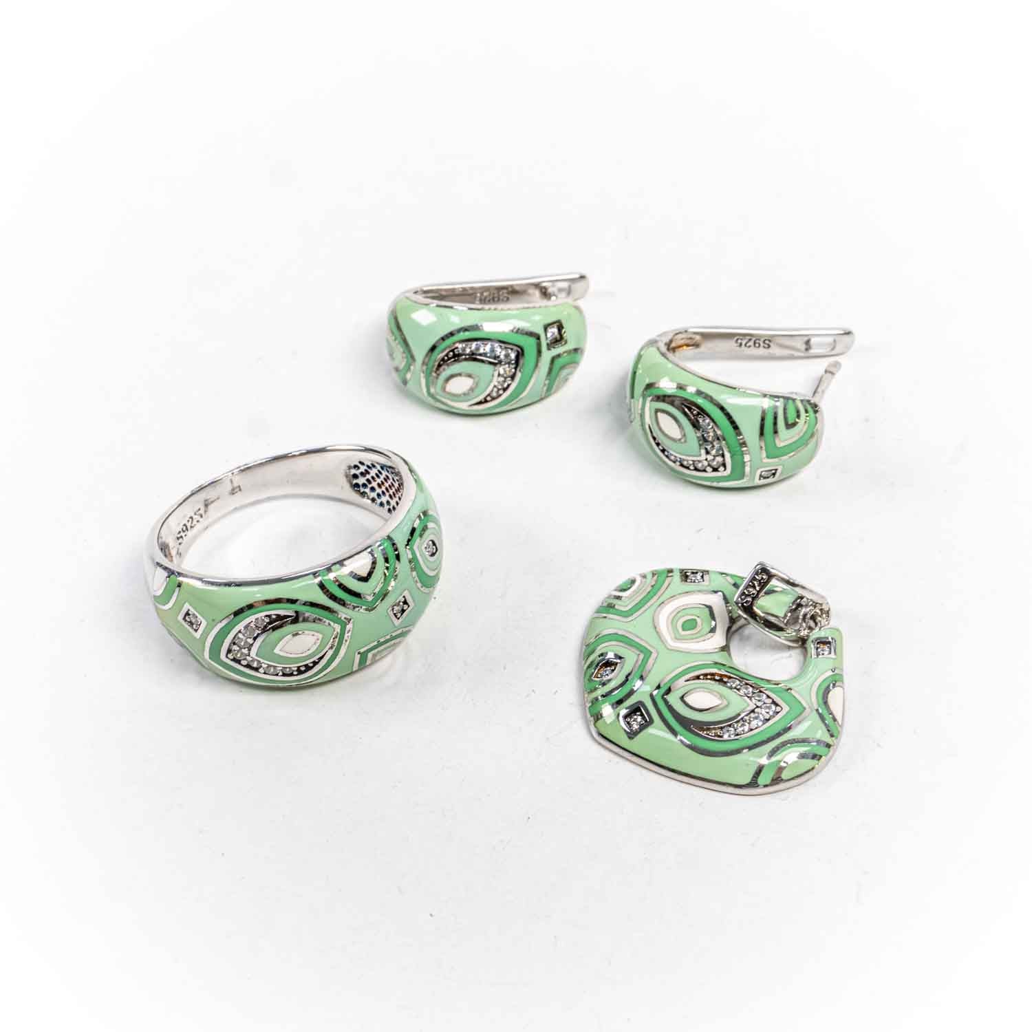 Descopera Set Bijuterii STILL Argint 925 - Pandantiv, Inel, Cercei, Email, Marime Inel 9, Verde, un set de bijuterii din Argint 925 compus din pandantiv, cercei si inel, decorat cu Email, , disponibil la marimea 9 in nuante , Verde, perfect pentru a adauga eleganta oricarei tinute.