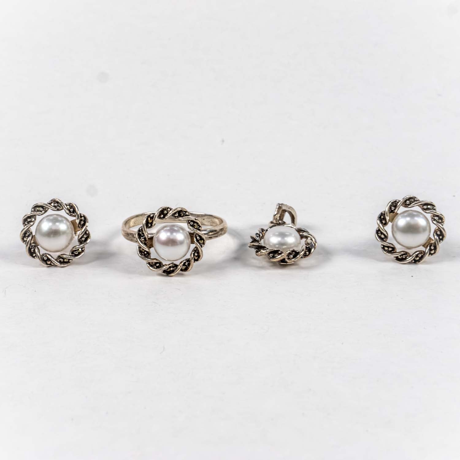 Descopera Set Bijuterii STILL Argint 925 - Pandantiv, Inel, Cercei, Perle de Cultura si Marcasite, Marime Inel 8, Alb Sidefat, un set de bijuterii din Argint 925 compus din pandantiv, cercei si inel, decorat cu Perle de Cultura si Marcasite, , disponibil la marimea 8 in nuante , Alb Sidefat, perfect pentru a adauga eleganta oricarei tinute.