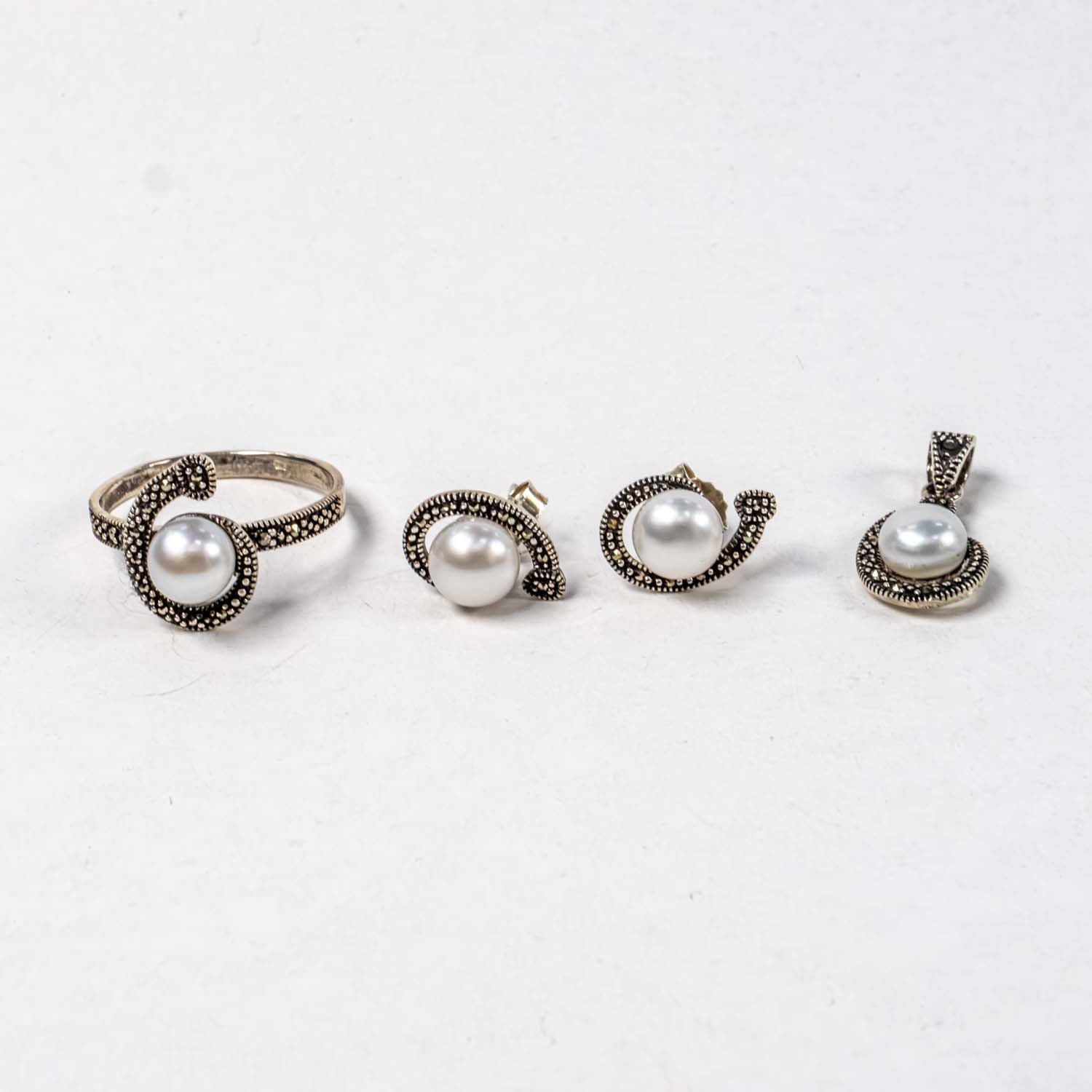 Descopera Set Bijuterii STILL Argint 925 - Pandantiv, Inel, Cercei, Perla de Cultura si Marcasite, Marime Inel 9, Alb Sidefat, un set de bijuterii din Argint 925 compus din pandantiv, cercei si inel, decorat cu Perla de Cultura si Marcasite, , disponibil la marimea 9 in nuante , Alb Sidefat, perfect pentru a adauga eleganta oricarei tinute.