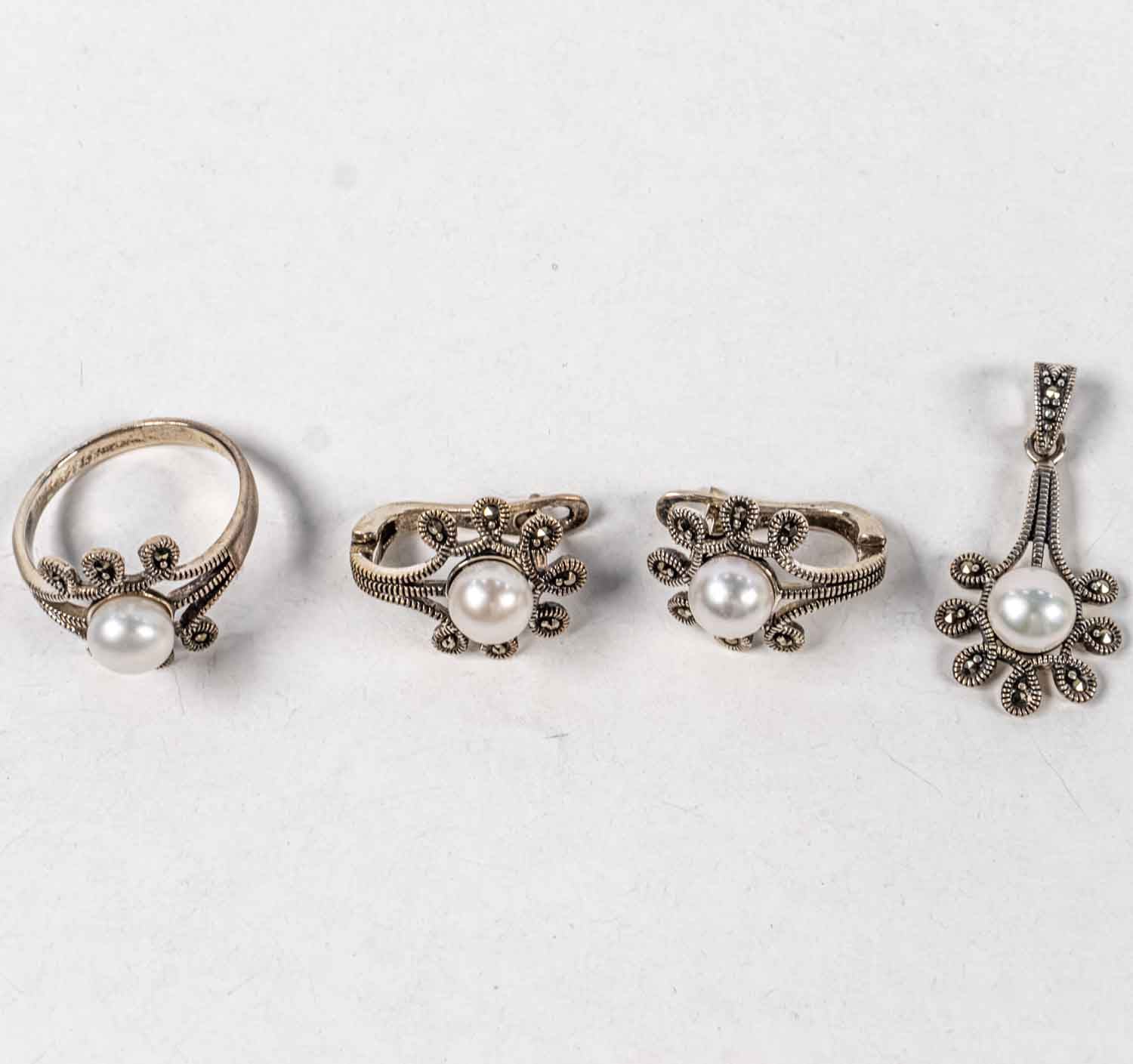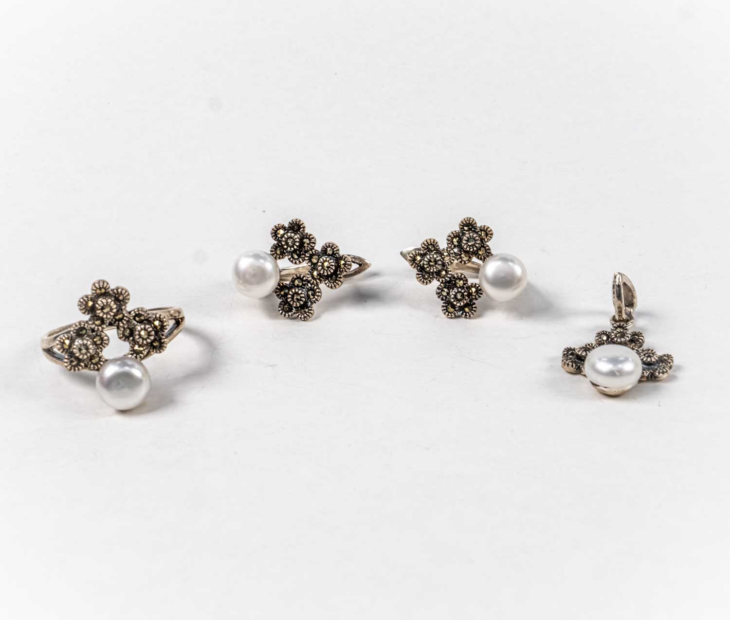 Descopera Set Bijuterii STILL Argint 925 - Pandantiv, Inel, Cercei, Perle de Cultura si Marcasite, Marime Inel 7, Alb Sidefat, un set de bijuterii din Argint 925 compus din pandantiv, cercei si inel, decorat cu Perle de Cultura si Marcasite, , disponibil la marimea 7 in nuante , Alb Sidefat, perfect pentru a adauga eleganta oricarei tinute.
