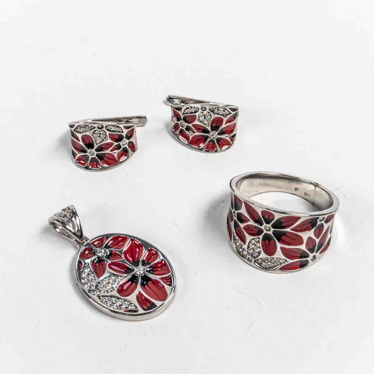 Descopera Set Bijuterii STILL Argint 925 - Pandantiv, Inel, Cercei, Email, Marime Inel 9, Rosu, un set de bijuterii din Argint 925 compus din pandantiv, cercei si inel, decorat cu Email, , disponibil la marimea 9 in nuante , Rosu, perfect pentru a adauga eleganta oricarei tinute.