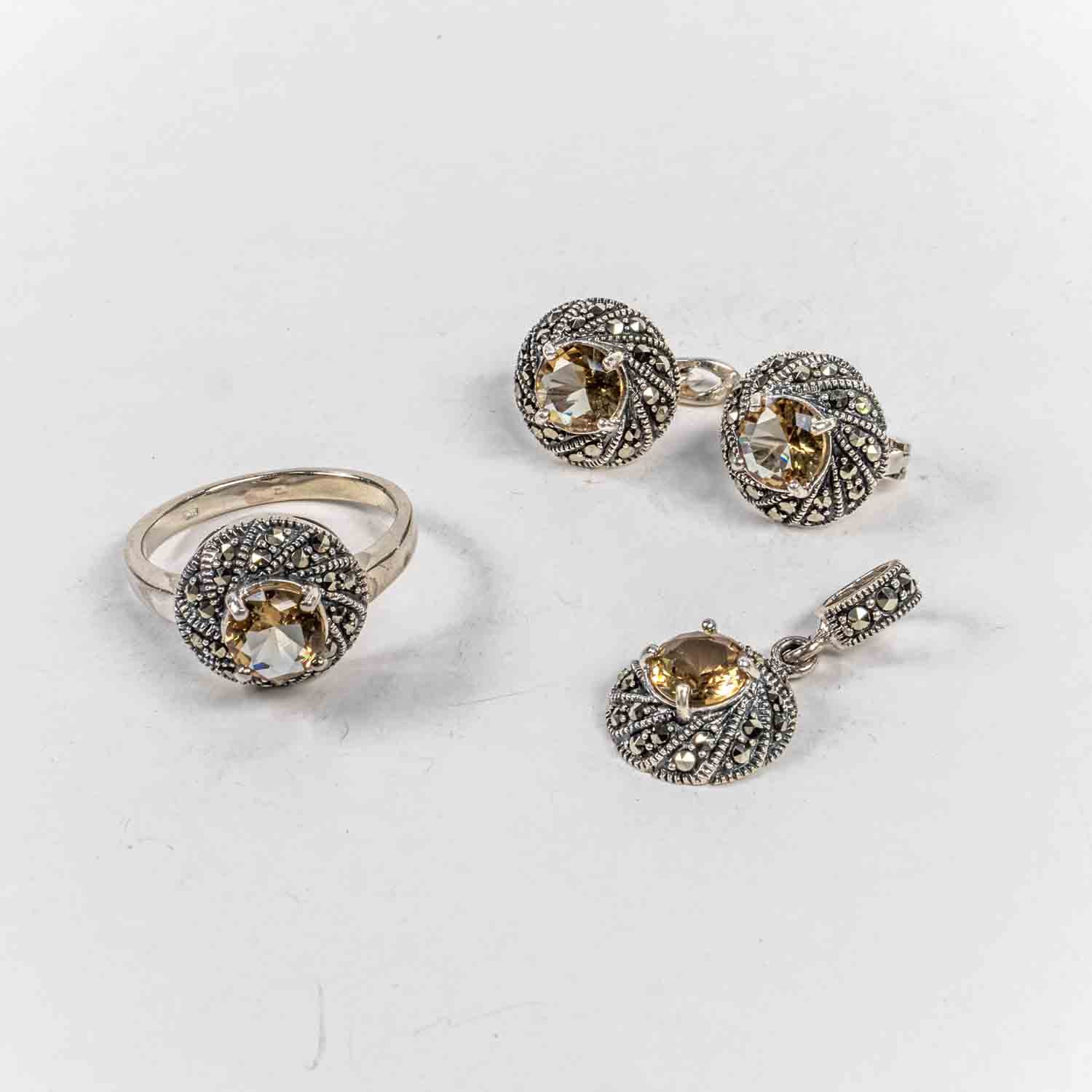 Descopera Set Bijuterii STILL Argint 925 - Pandantiv, Inel, Cercei, Sultanit si Marcasite, Marime Inel 9, Variabila, un set de bijuterii din Argint 925 compus din pandantiv, cercei si inel, decorat cu Sultanit si Marcasite, , disponibil la marimea 9 in nuante , Variabila, perfect pentru a adauga eleganta oricarei tinute.