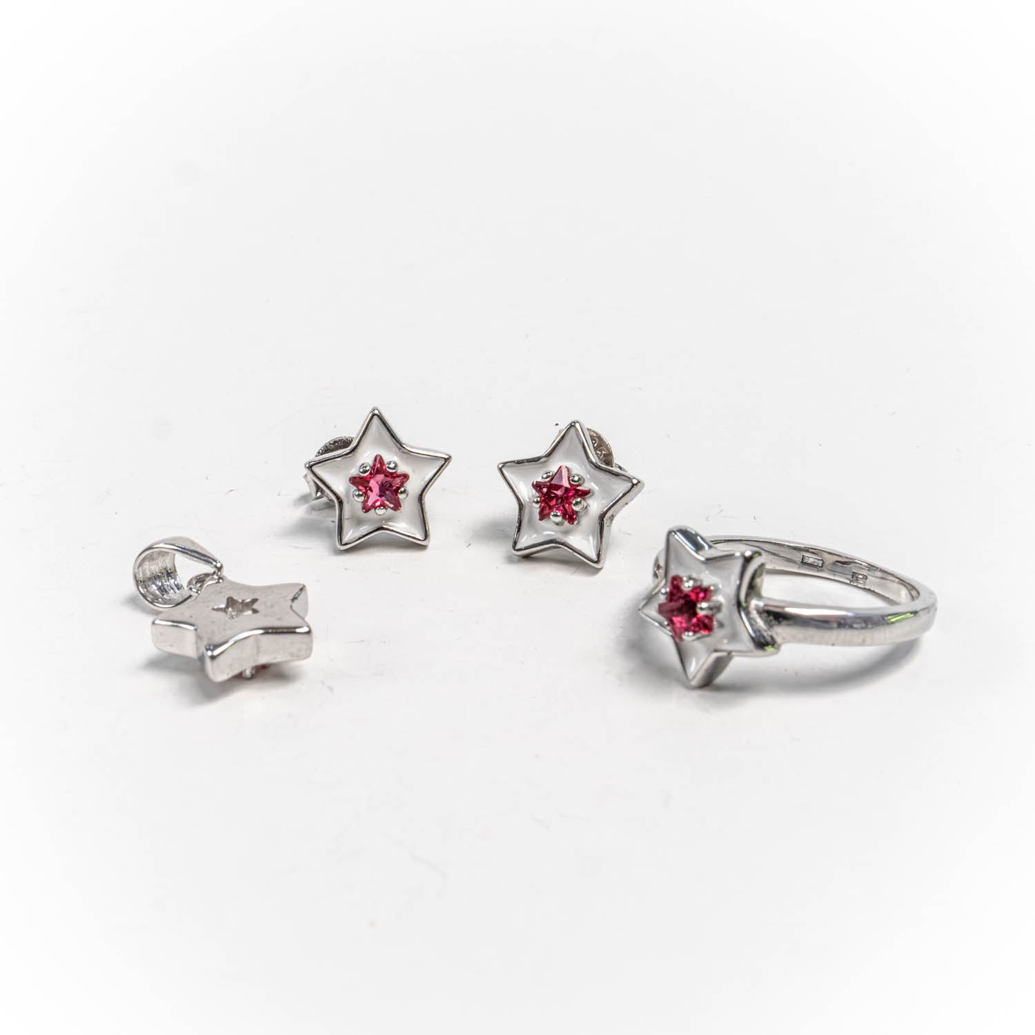 Descopera Set Bijuterii STILL Argint 925 - Pandantiv, Inel, Cercei, Email, Marime Inel 4, Rosu, un set de bijuterii din Argint 925 compus din pandantiv, cercei si inel, decorat cu Email, , disponibil la marimea 4 in nuante , Rosu, perfect pentru a adauga eleganta oricarei tinute.