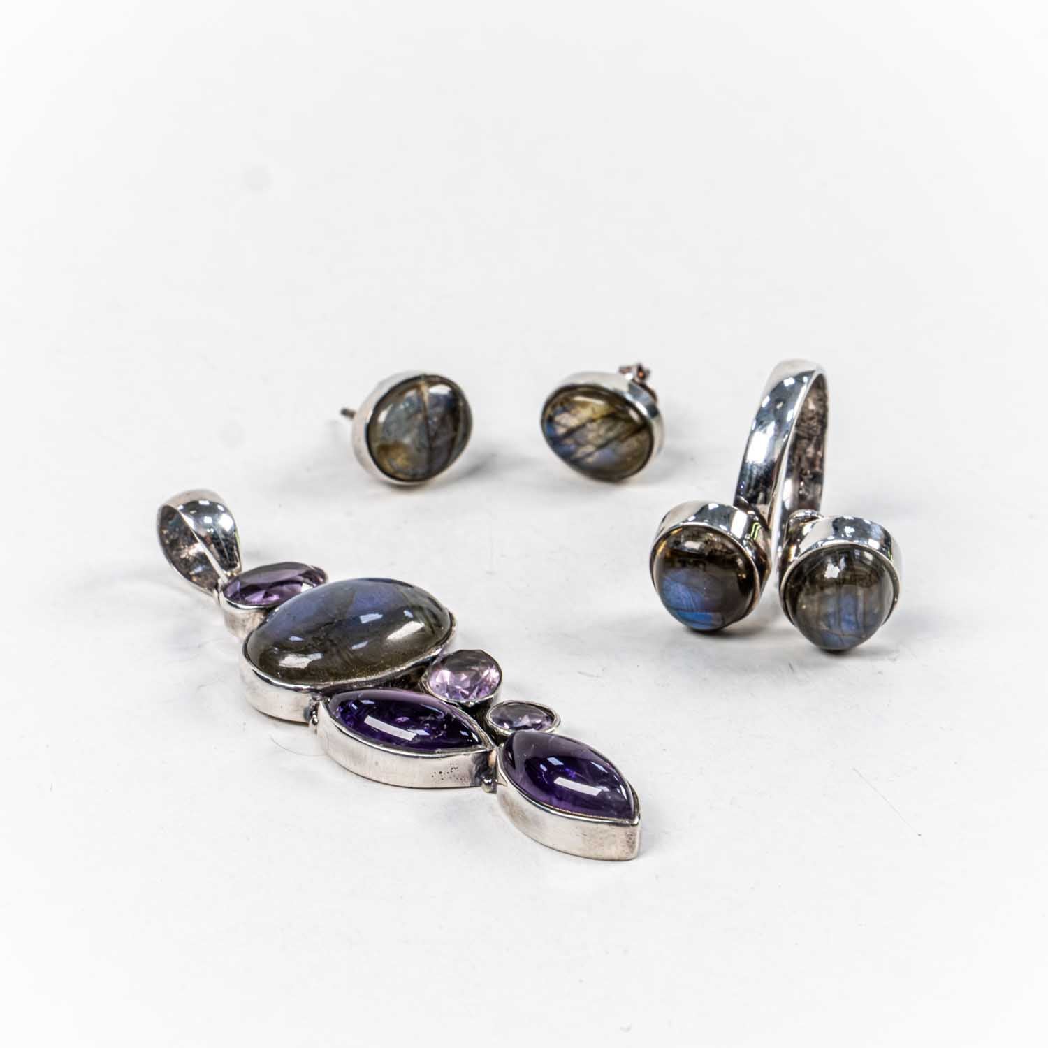 Descopera Set Bijuterii STILL Argint 925 - Pandantiv, Inel, Cercei, Labradorit si Ametist, Inel Reglabil, Multicolor, un set de bijuterii din Argint 925 compus din pandantiv, cercei si inel, decorat cu Labradorit si Ametist, , disponibil la marimea Reglabil, in nuante Multicolor, perfect pentru a adauga eleganta oricarei tinute.