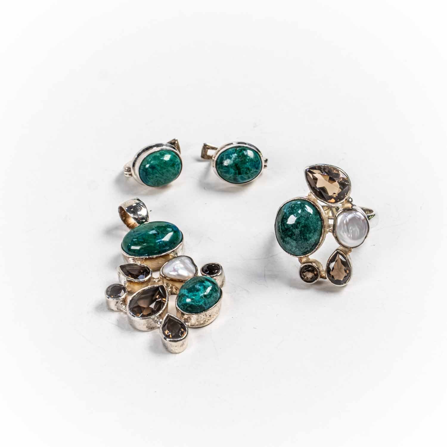 Descopera Set Bijuterii STILL Argint 925 - Pandantiv, Inel, Cercei, Crisocola si Pietre Semipretioase, Inel Reglabil, Verde, un set de bijuterii din Argint 925 compus din pandantiv, cercei si inel, decorat cu Crisocola si Pietre Semipretioase, , disponibil la marimea Reglabil, in nuante Verde, perfect pentru a adauga eleganta oricarei tinute.
